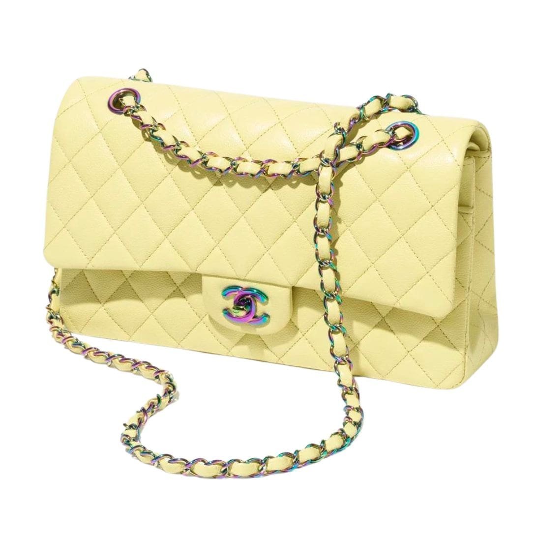 The vibrant yellow hue of the handbag adds a refreshing twist to Chanel’s classic design, injecting a pop of color into any ensemble. It embodies the essence of spring and summer, radiating warmth and vitality with its sunny disposition. The smooth, buttery texture of the leather enhances the bag’s allure, inviting touch and admiration.