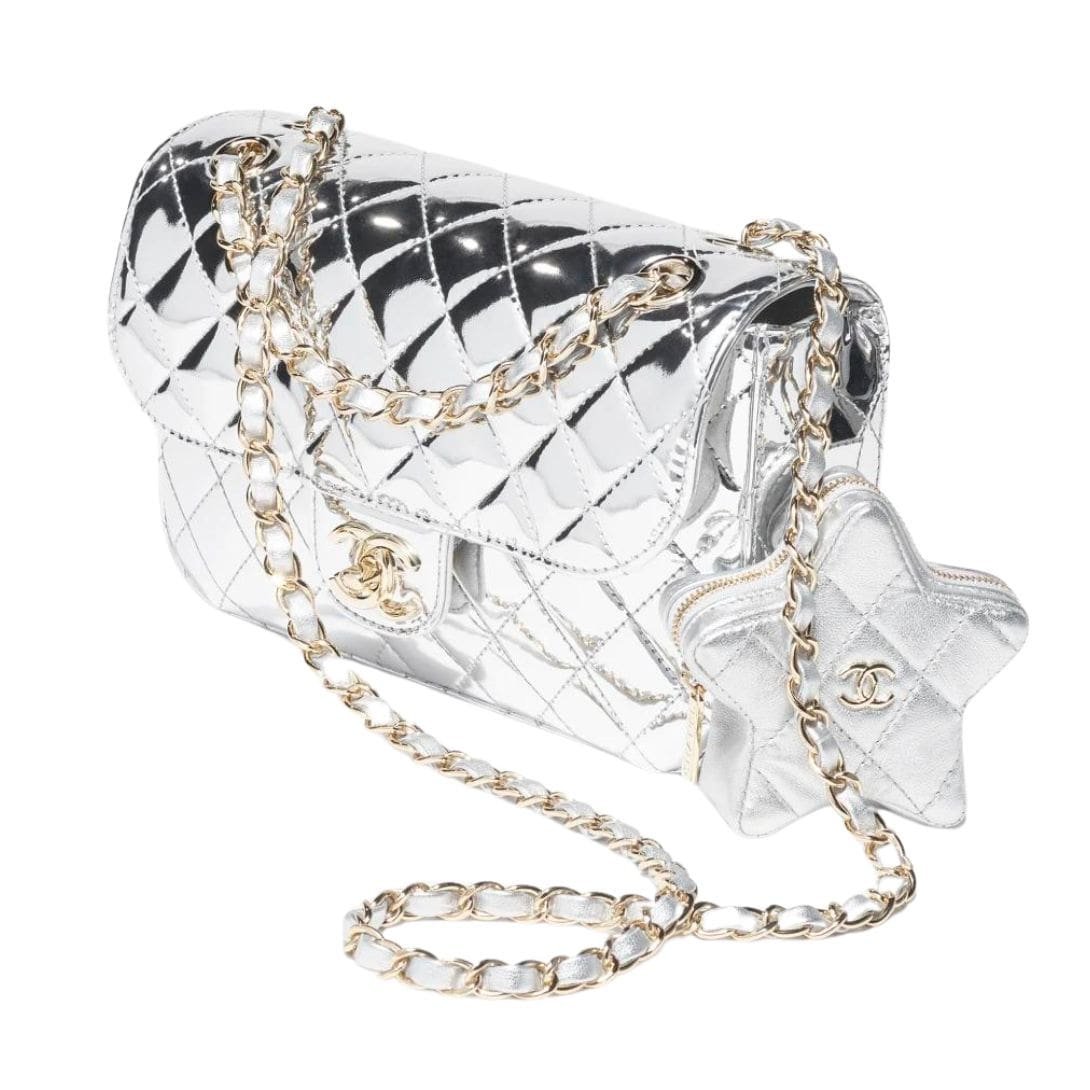 Complementing the Flap Bag is the equally enchanting Chanel Star Coin Purse. Petite yet striking, this charming accessory adds a touch of whimsy to any ensemble. Crafted from the finest leather and adorned with Chanel’s iconic quilting, the Star Coin Purse features a playful star-shaped design, capturing the imagination of fashion enthusiasts worldwide. Its compact size makes it ideal for storing coins, cards, or small essentials, while its timeless elegance ensures it remains a coveted collector’s item.