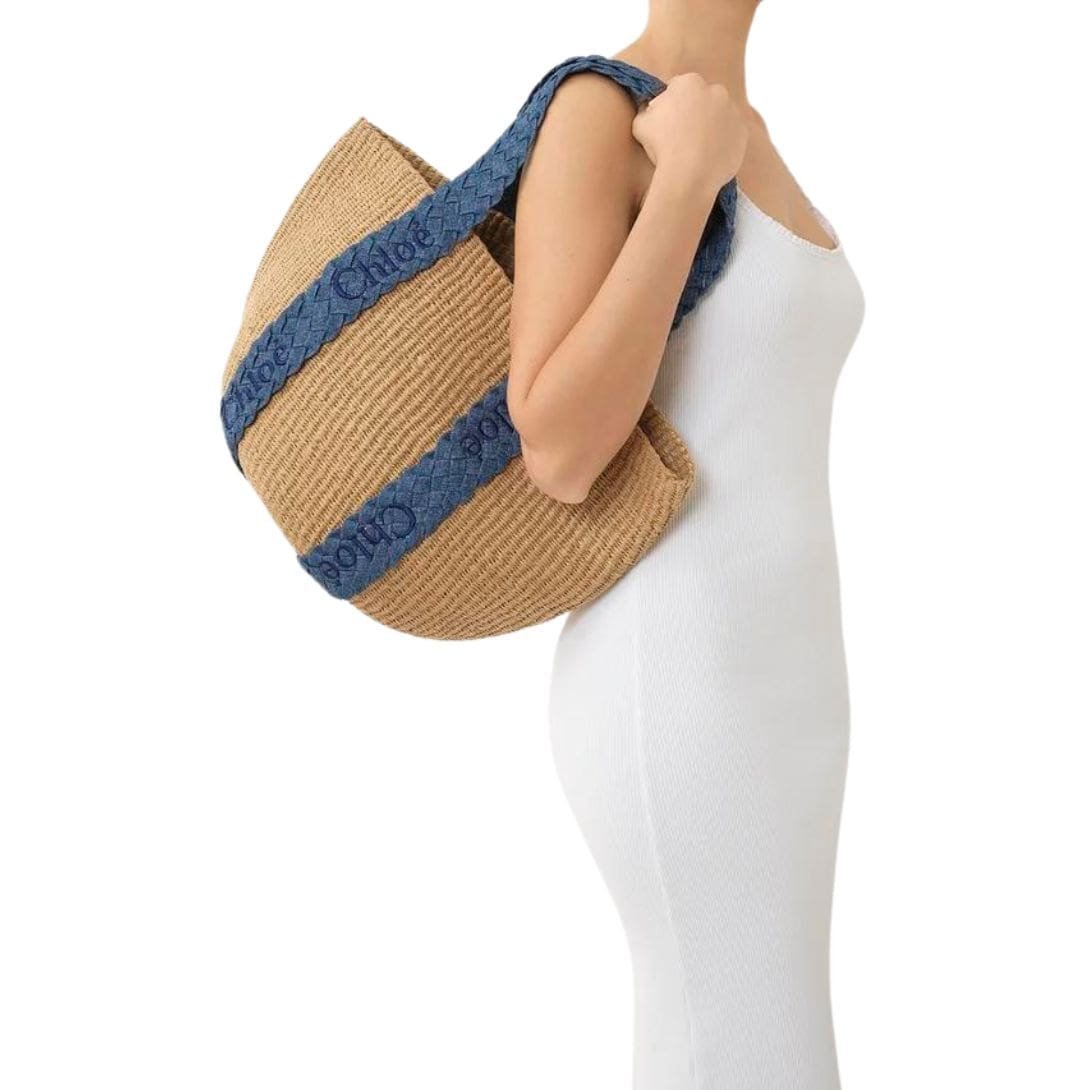 Embrace the essence of summertime charm with the Chloe Large Woody Basket Denim. by Chloé, a timeless creation meticulously handwoven by skilled craftswomen in Kenya. Designed in a classic basket shape, this accessory effortlessly captures the laid-back mood of summer with its artisanal craftsmanship and understated elegance.