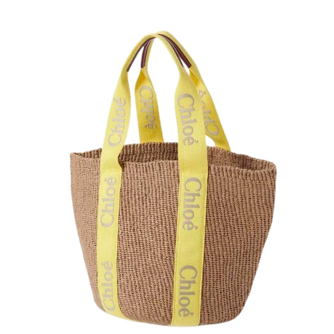 CHLOE LARGE WOODY BASKET YELLOW & BEIGE
