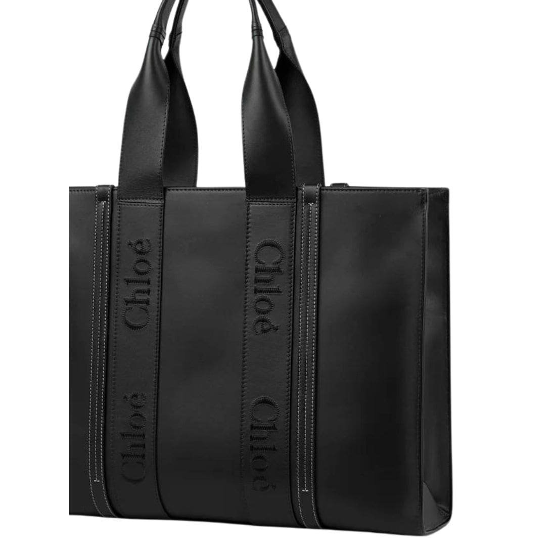 Indulge in understated luxury with the Chloe Large Woody Tote Bag Black. by Chloe, a testament to timeless sophistication and impeccable craftsmanship. Crafted from smooth calfskin, this tote bag offers a natural look with a luxurious feel, elevating any ensemble with its refined aesthetic.