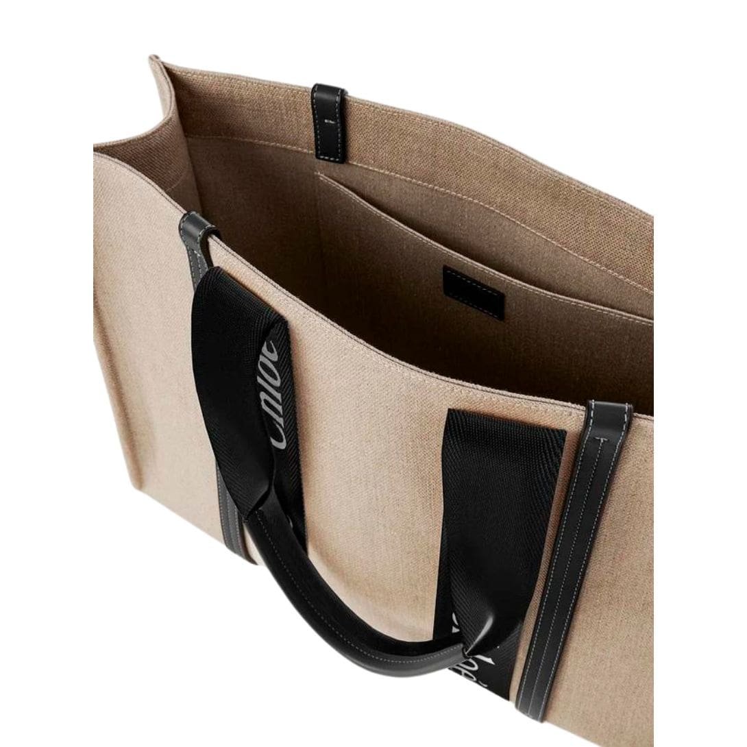 Designed as a spacious day bag, the Large Woody Tote Bag combines practicality with elegance, offering ample room in its inside compartment for all your essentials. A practical flat pocket adds functionality, keeping your belongings organized and easily accessible.