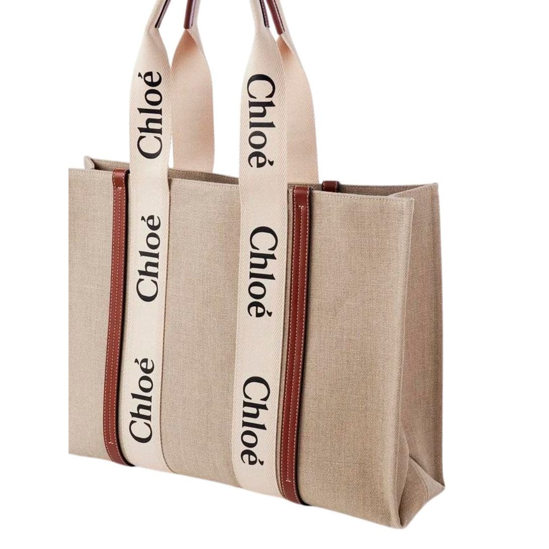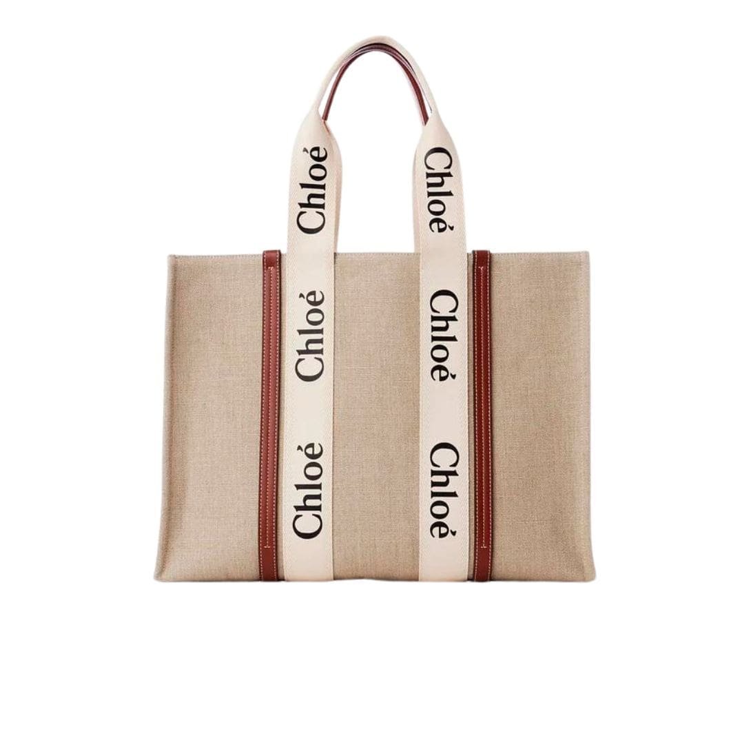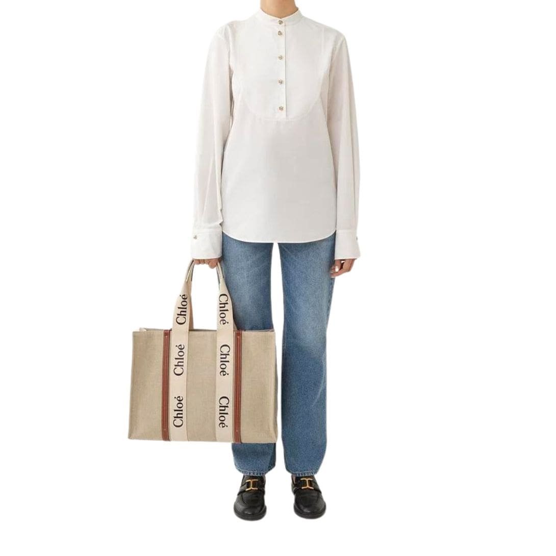 CHLOE LARGE WOODY TOTE BAG WHITE & BROWN