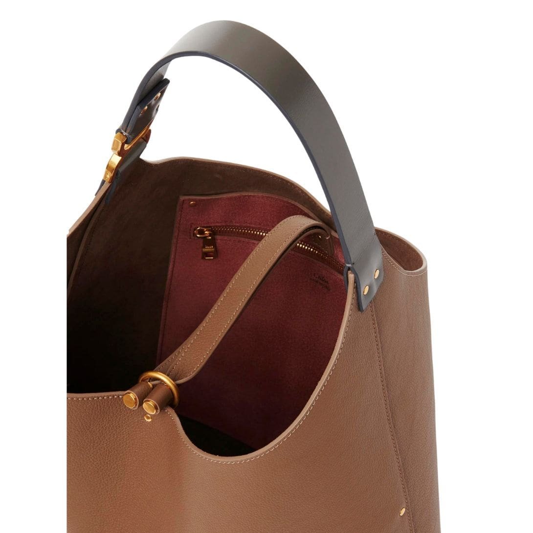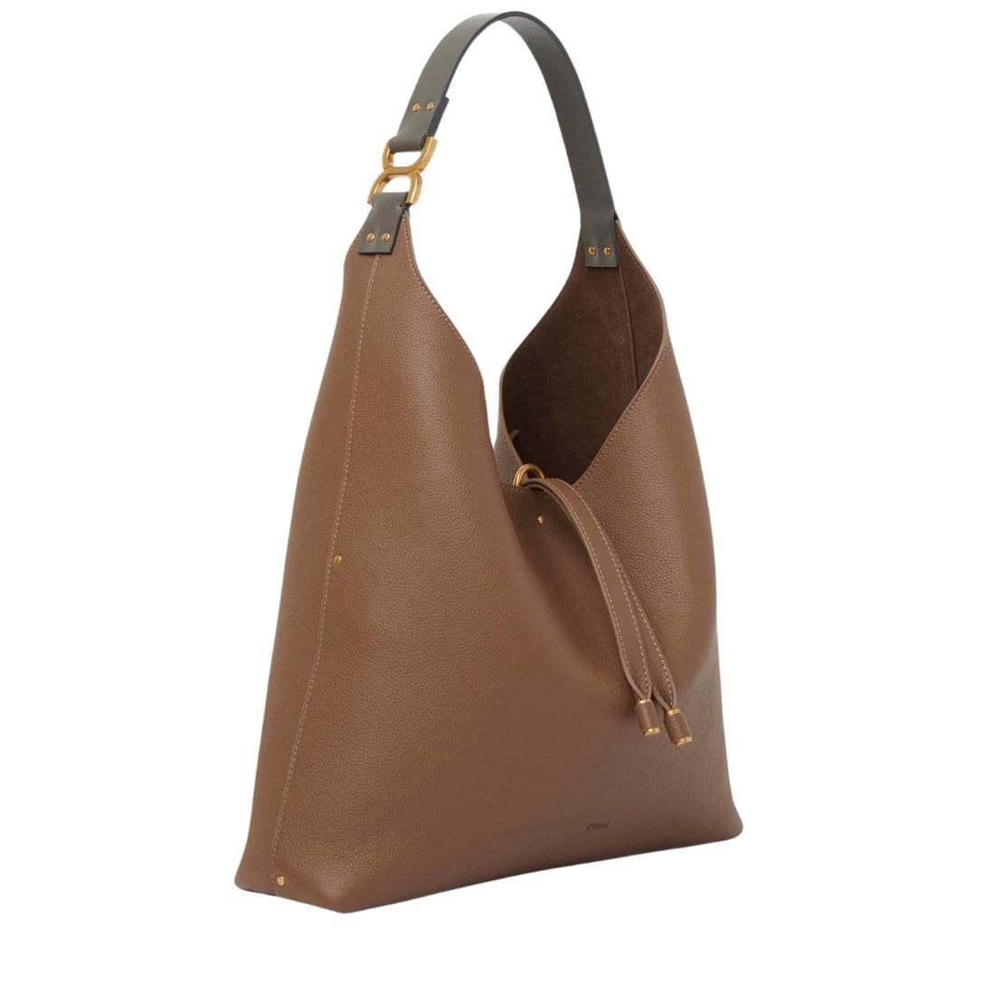 Step into the realm of timeless elegance with the Maison’s latest addition to its illustrious Marcie line, a resplendent CHLOE Marcie Hobo Bag Dark Nut that seamlessly marries sophistication with a relaxed, slouchy silhouette. Crafted from the finest-grained calfskin, this day bag exudes an air of understated luxury, inviting admiration at every glance.