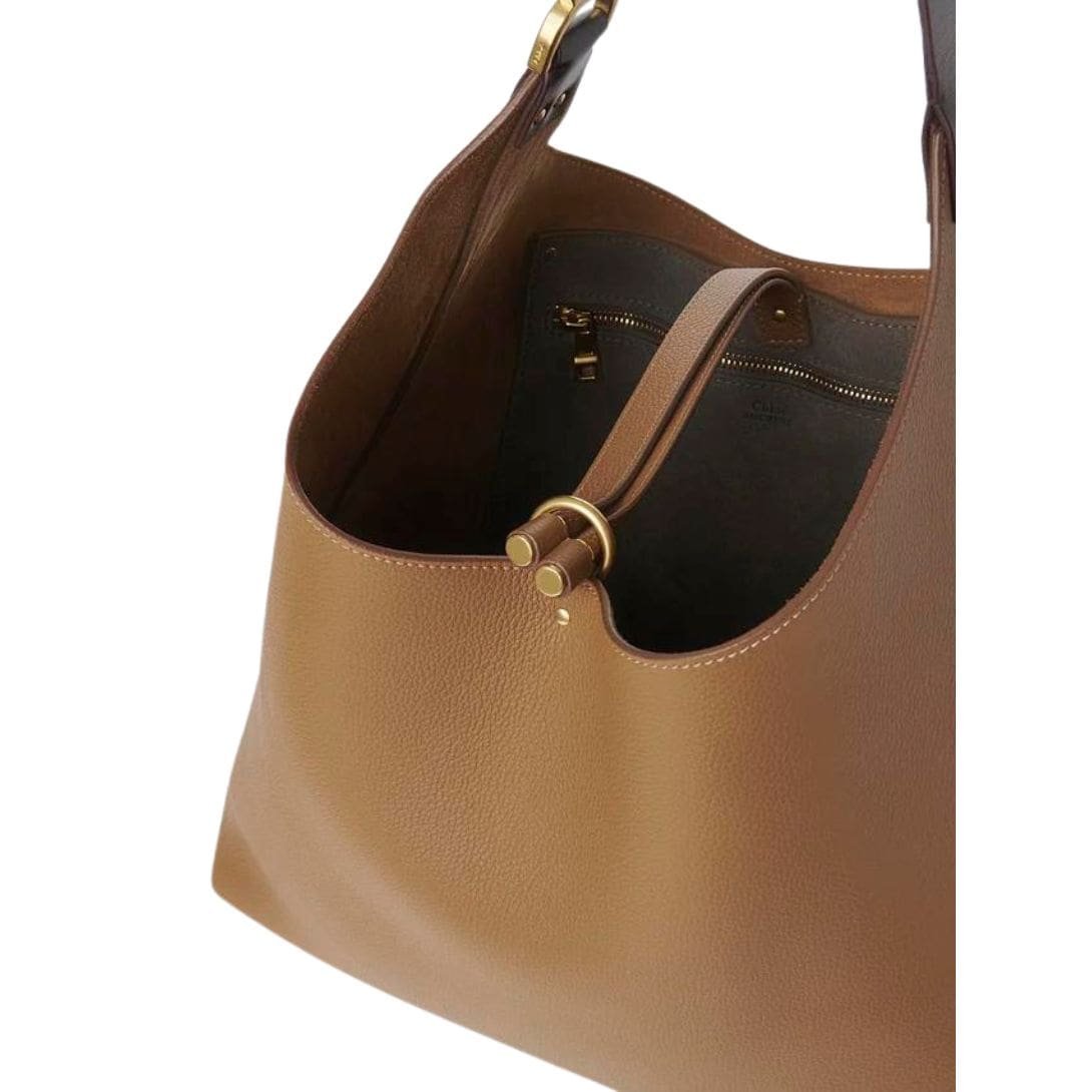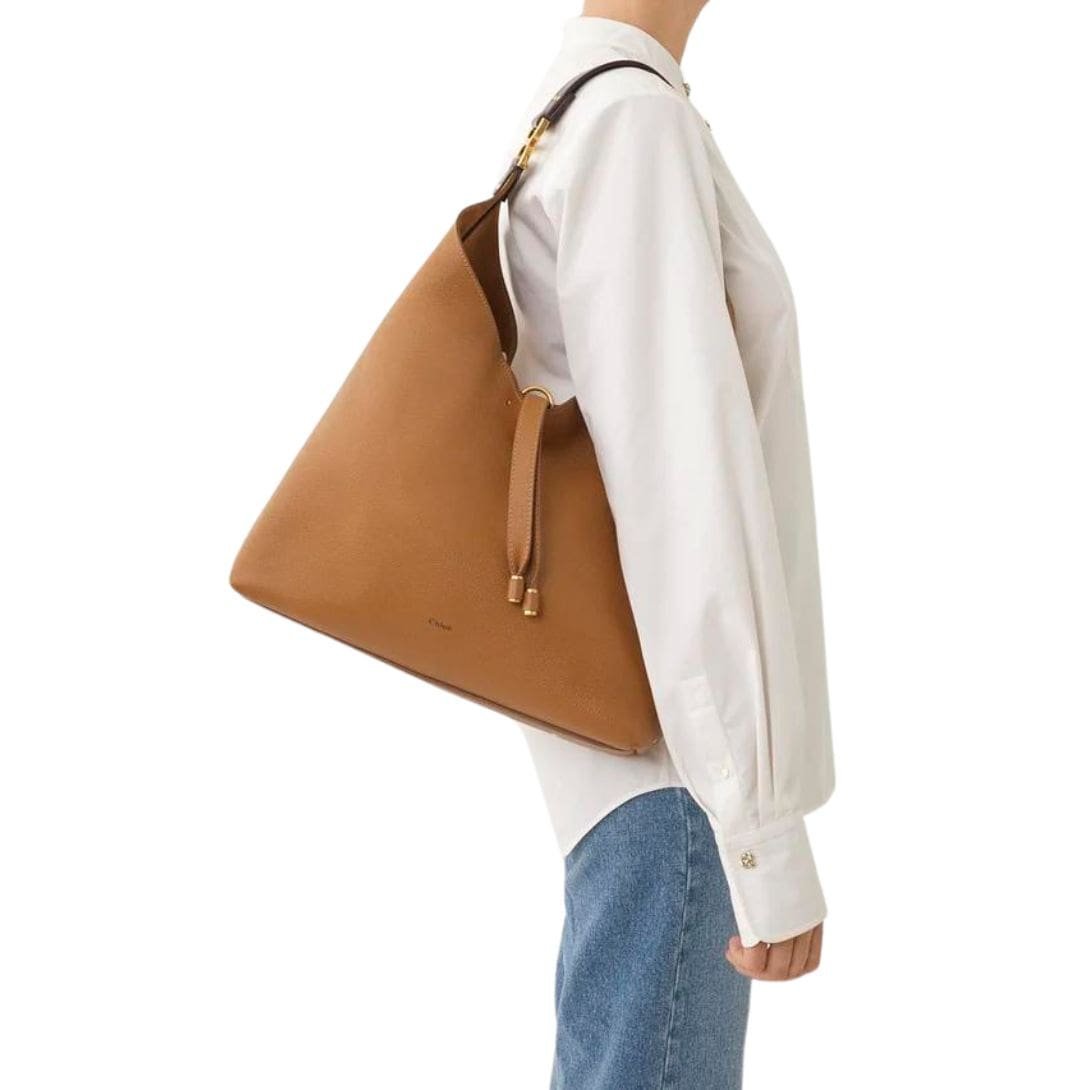 Introducing the latest addition to the iconic Chloe Marcie Hobo Bag Pottery Brown. a line from the esteemed Maison, the Marcie Hobo Bag in Pottery Brown seamlessly merges timeless sophistication with modern functionality. Crafted from luxurious-grained calfskin, this spacious hobo bag boasts a soft and slouchy silhouette, effortlessly marrying clean lines with relaxed elegance.