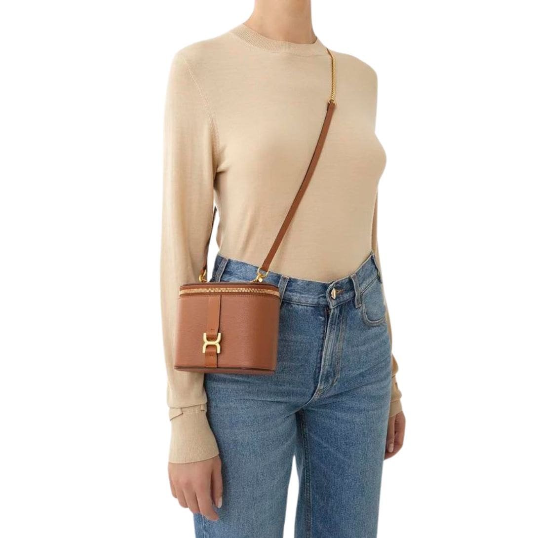 Chloé introduces the Chloe Marcie Mini Vanity on Chain Tan. as a charming addition to its iconic Marcie line, offering a blend of elegance and practicality. Crafted from luxurious grained calfskin leather and adorned with gold-toned hardware, this miniature vanity exudes sophistication.