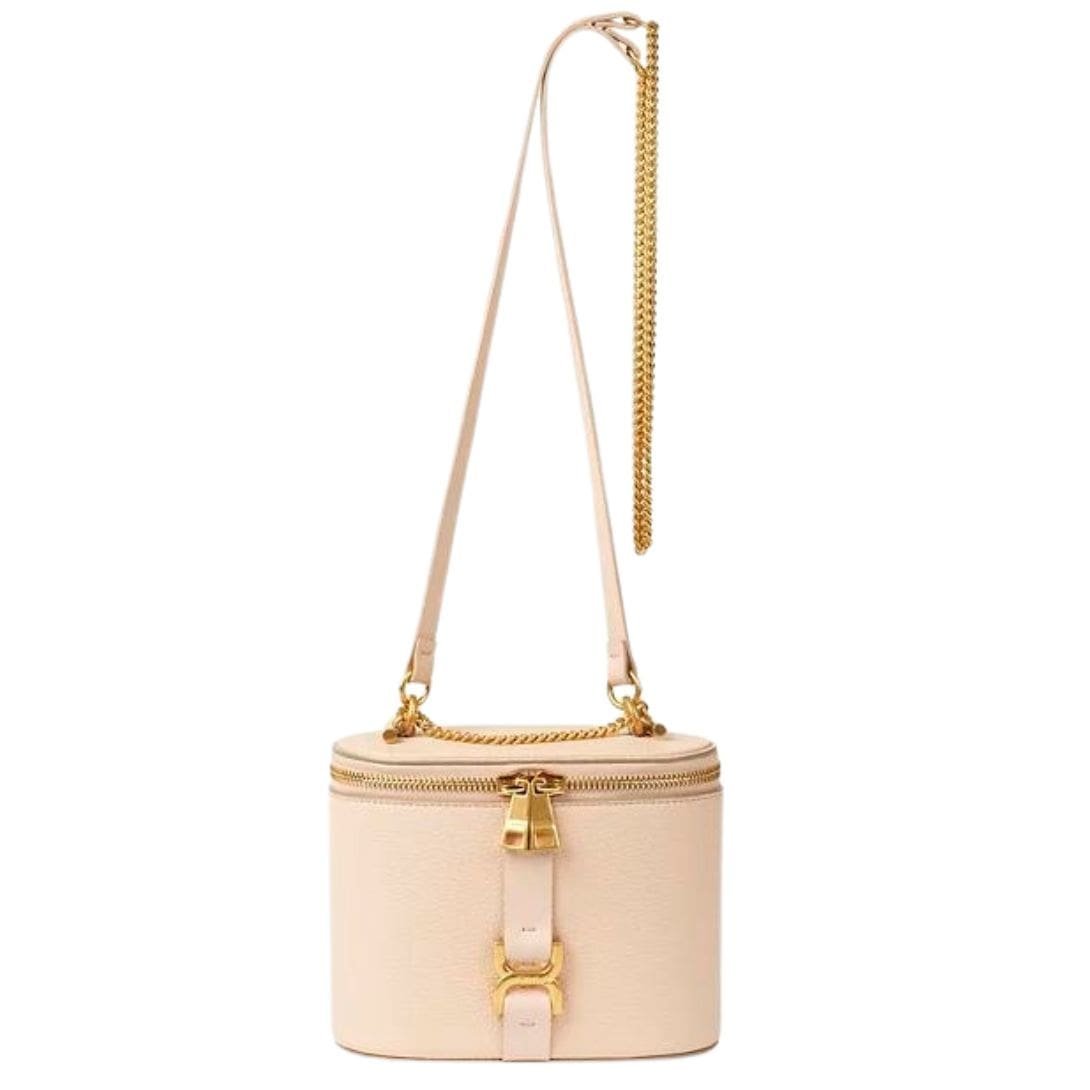Crafted from a combination of grained and shiny calfskin, the Marcie Pouch on Chain showcases Chloé’s dedication to premium materials and impeccable craftsmanship. Its main lining crafted from lambskin adds a luxurious touch to the accessory.
