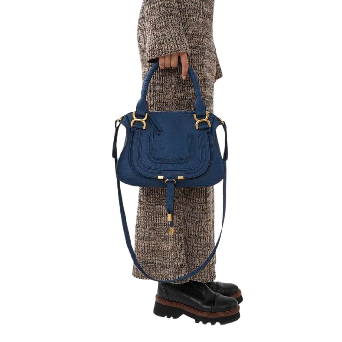 CHLOE MARCIE SMALL DOUBLE CARRY BAG DEEP DENIM