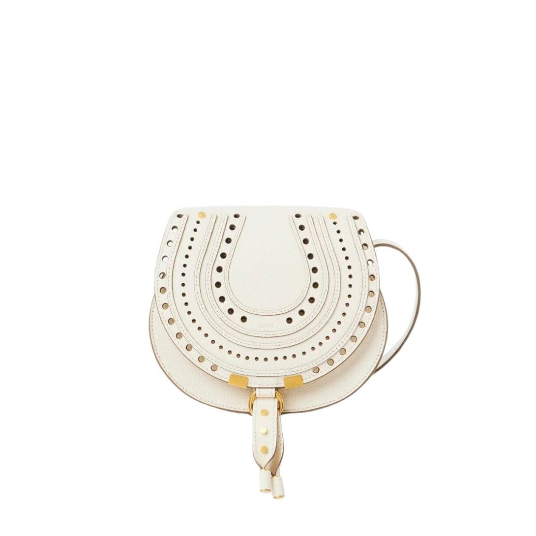 In line with the ethos of Maison’s Marcie bag line, this small double-carry bag seamlessly blends a feminine aesthetic with the free-spirited essence of the 70s folk era. Decorative saddle stitches evoke equestrian allure, while the glint of brass hardware and the playful sway of a dangling tassel infuse whimsical femininity. These exquisite details lend the bag a timeless appeal, capturing the essence of Maison’s signature style.