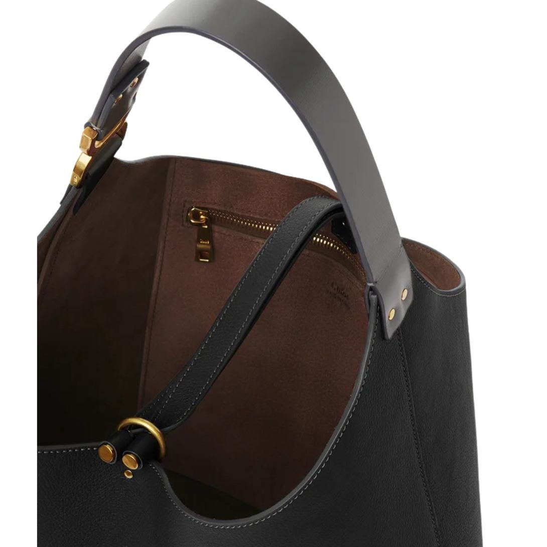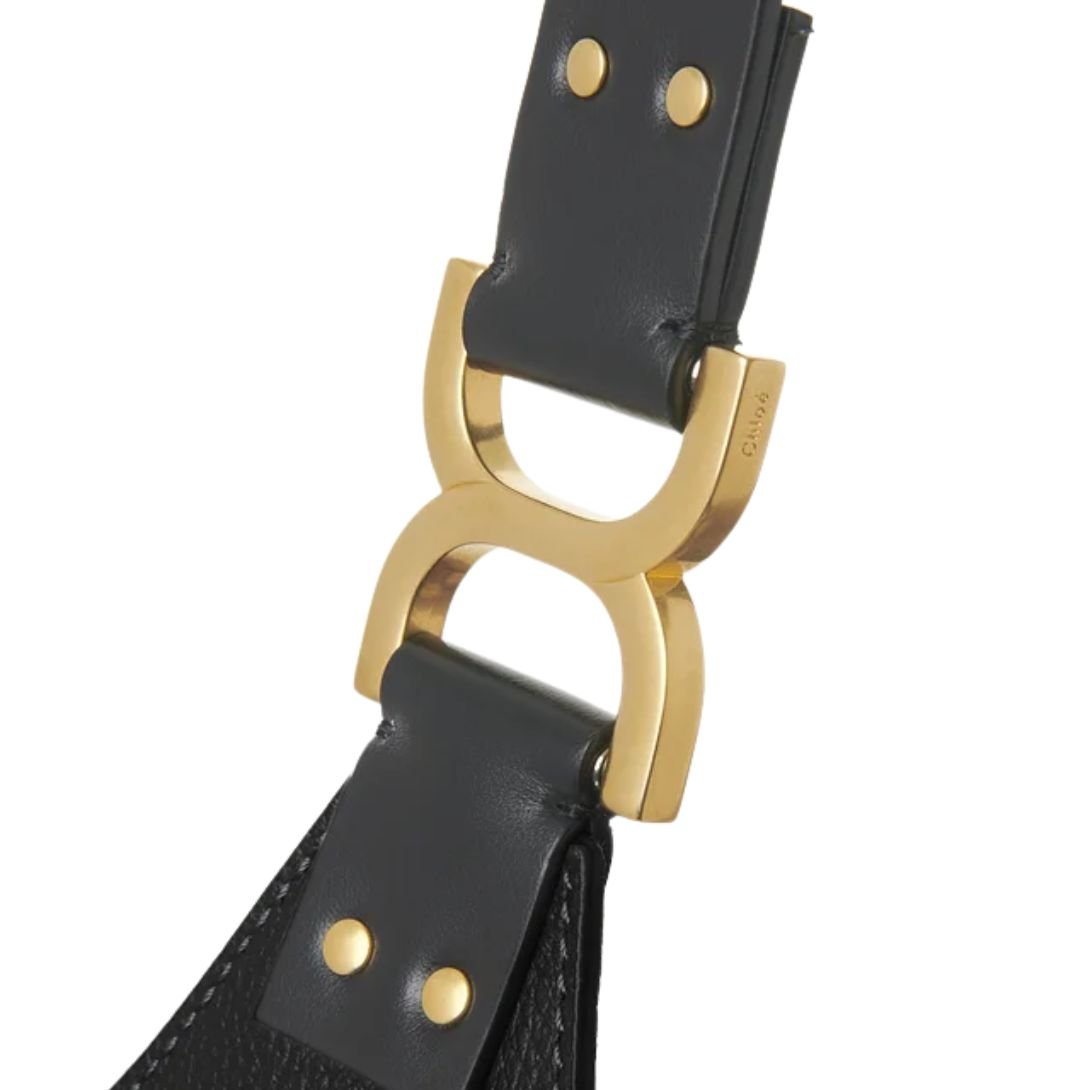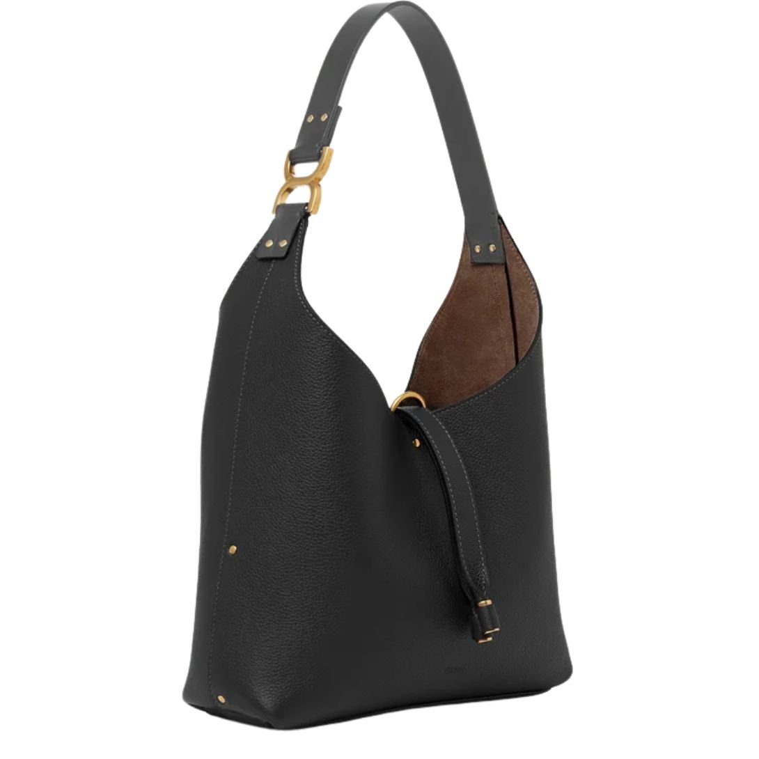The Small Marcie Hobo Bag embodies Chloé’s signature bohemian spirit with a slouchy, minimalist silhouette. Crafted from luxurious grained calfskin, the design is elevated with a contrasting studded handle adorned with the line’s iconic gold-tone metallic accent. Tassel ties and a soft suede-lined interior add refined character, making it an effortlessly chic choice for everyday wear.