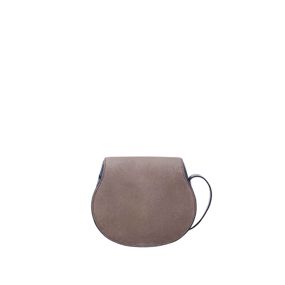 Crafted with meticulous attention to detail, the CHLOE Marcie Small Saddle Bag Cashmere Grey represents the epitome of Chloe’s fusion of masculine and feminine aesthetics. Constructed from a luxurious combination of bicolor suede and grained calfskin, this accessory exudes a sense of understated elegance with its clean top line and rounded silhouette, showcasing the Maison’s signature play on contrasting elements.