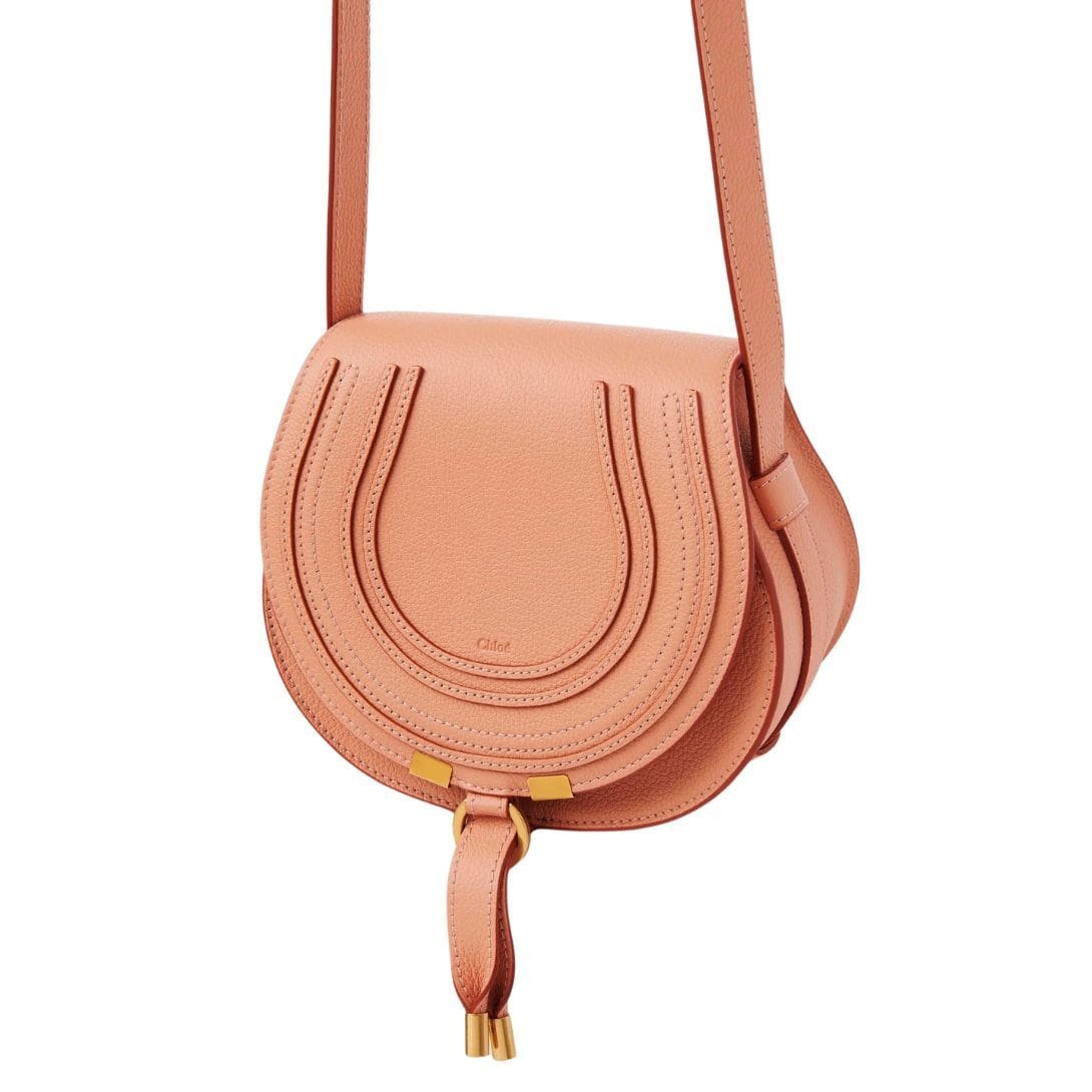 Rooted in a 70s folk spirit, the CHLOE Marcie bag line captivates with its nostalgic charm and equestrian-inspired details. Delicate saddle stitches evoke a sense of rustic elegance, while the gleam of brass hardware and a playful tassel accent infuse a feminine flourish into the design.