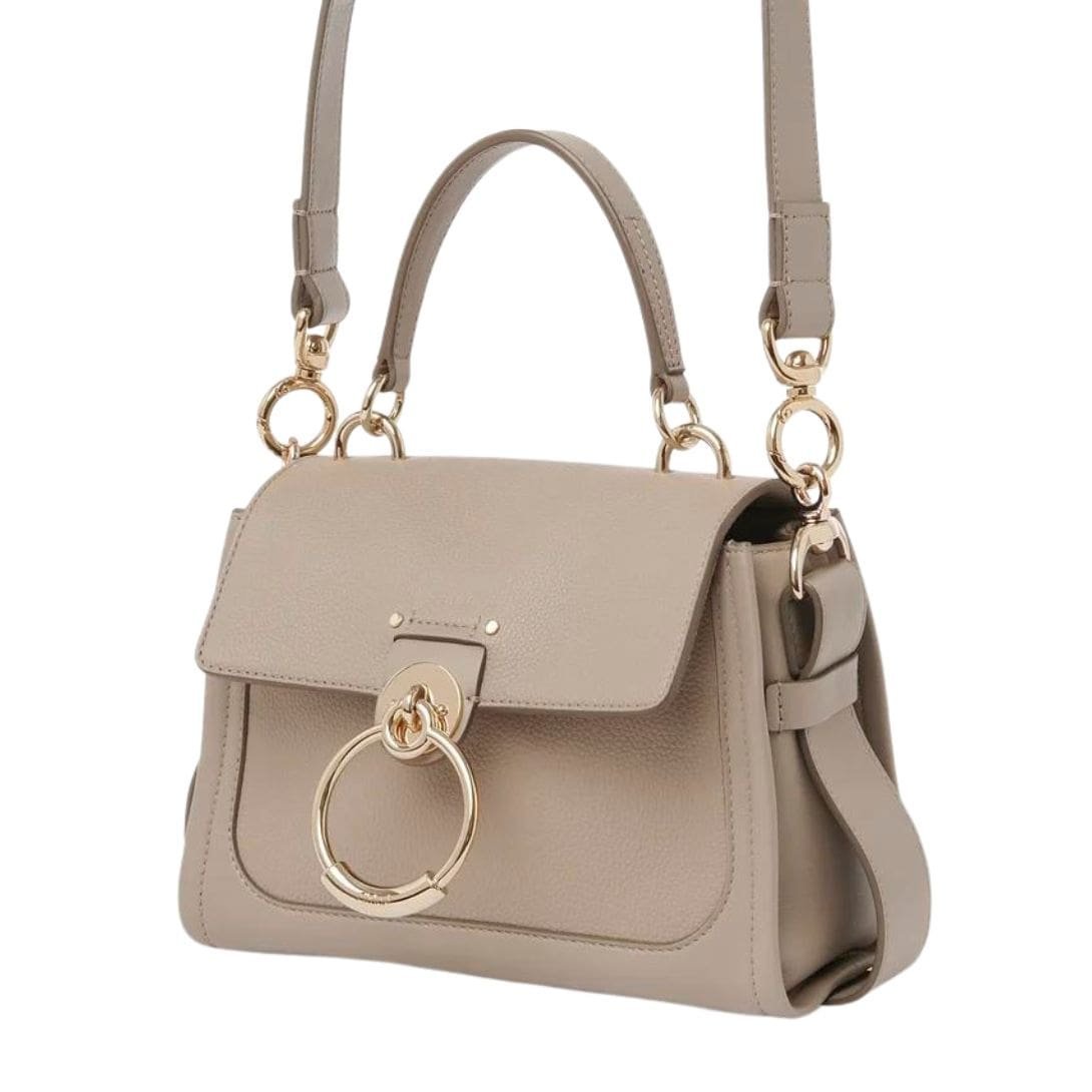 The bag features double straps—short and long— secured by feminine hooks in golden and silver tones. This thoughtful design not only adds visual interest but also provides versatility in carrying options. Whether you prefer to carry it by hand, sling it over your shoulder, or wear it cross-body, the Chloe Mini Tess Day Bag offers effortless style for any occasion.
