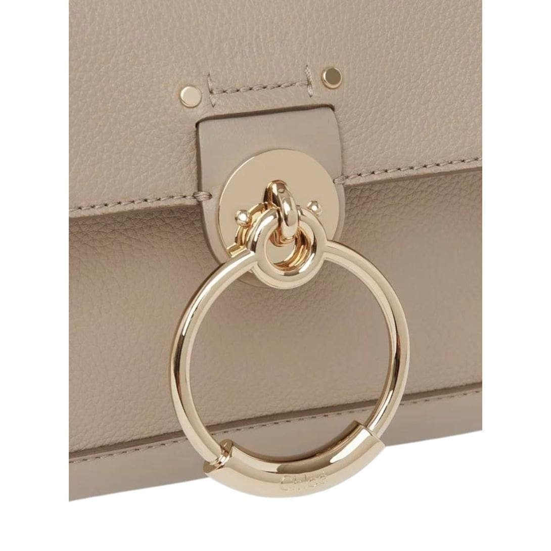 At the heart of its design lies the striking front loop adorned with Chloe’s iconic “O” signature. This signature detail adds a touch of distinction to the bag’s aesthetic, making it instantly recognizable as a Chloe creation.