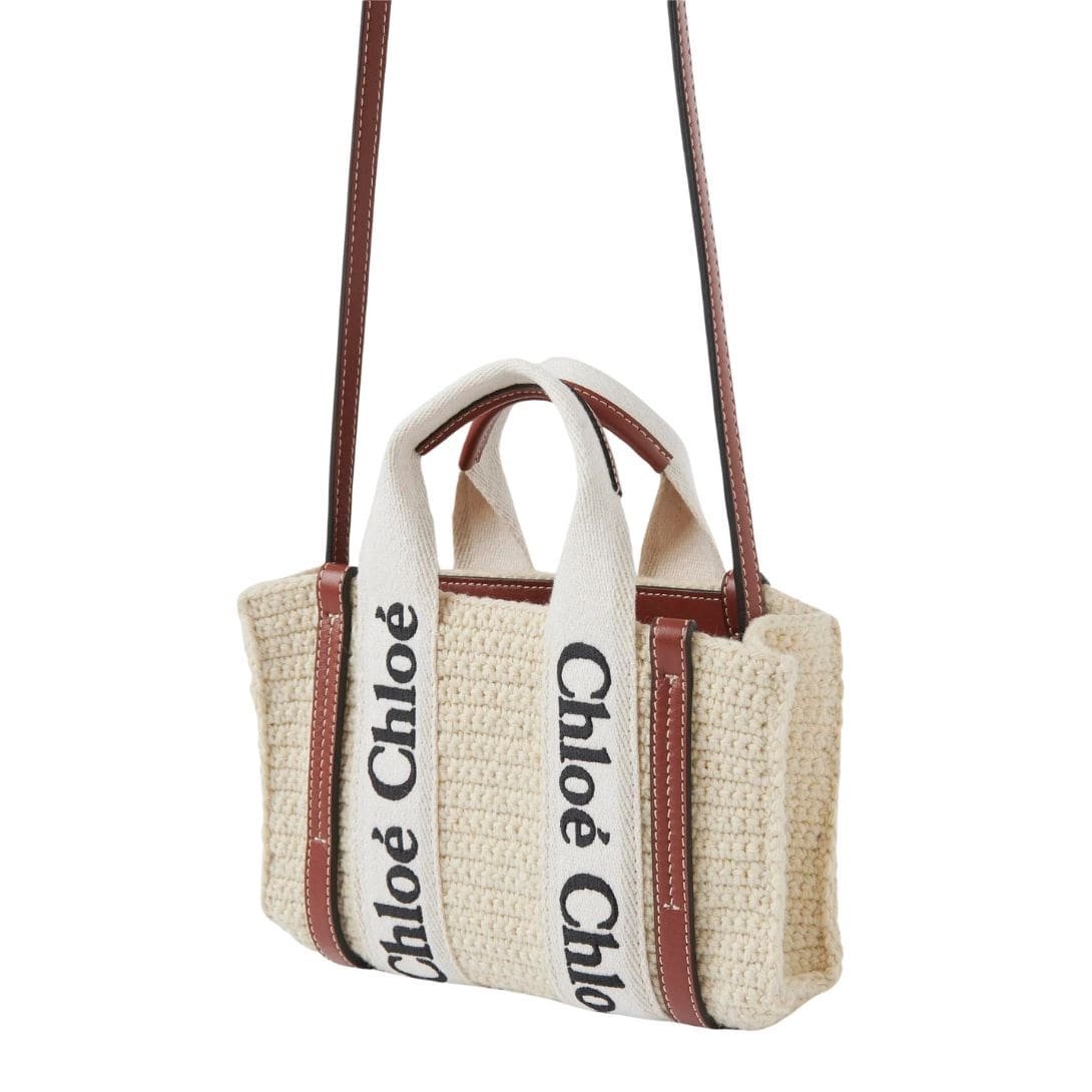 Immerse yourself in the enchanting fusion of textures and artisanal craftsmanship with the CHLOE Mini Woody Tote Bag Brown And Beige, a captivating collaboration between Chloé and the Lebanese social enterprise, Sarah’s Bag. Inspired by the iconic Woody nano tote, this miniature masterpiece embodies a harmonious blend of crochet, contrasting calfskin, and linen webbing, meticulously crafted to evoke a sense of effortless sophistication and summer allure. Each element of this compact accessory is imbued with a rich narrative, celebrating the spirit of collaboration and empowering underprivileged women through unique local craftsmanship.