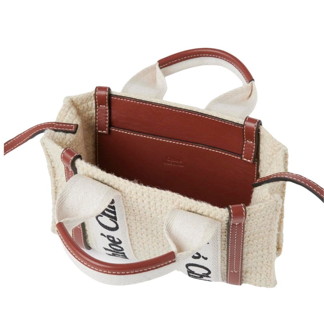 CHLOE MINI WOODY TOTE BAG BROWN AND BEIGE