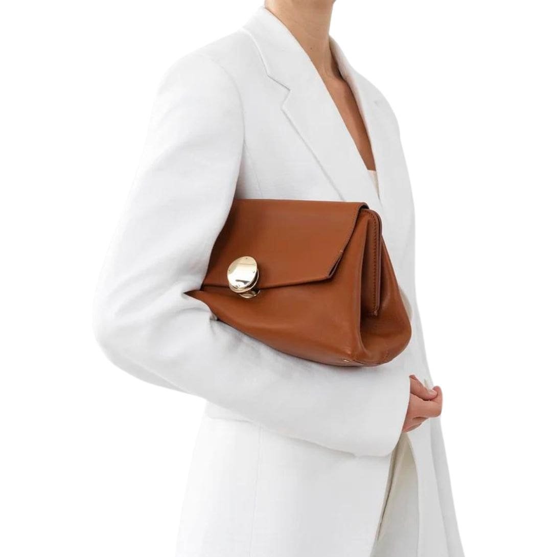 A defining feature of the Penelope clutch is its signature metallic closure, a nod to the brand’s attention to detail and timeless appeal. This closure adds a touch of sophistication to the clutch’s slouchy yet feminine shape, elevating its overall look.