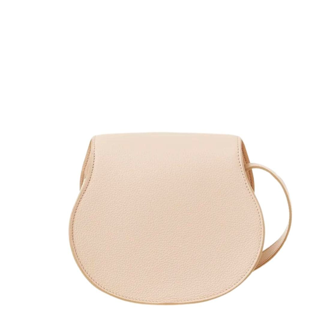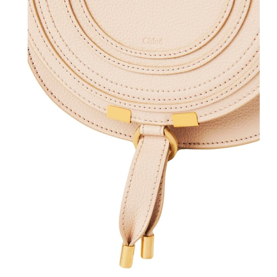 Experience the epitome of understated elegance with the iconic CHLOE Small Marcie Saddle Bag In Grained Leather Cement Pink, a timeless accessory crafted from luxurious grained calfskin that seamlessly blends soft silhouettes with equestrian-inspired details. Designed to accompany you effortlessly from day to evening, this exquisite handbag boasts a rounded silhouette that exudes a sense of sophistication and charm.
