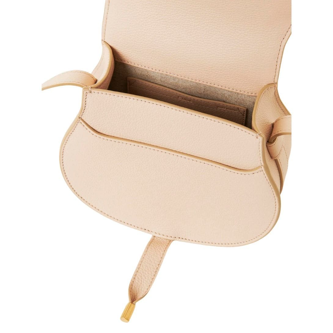 CHLOE SMALL MARCIE SADDLE BAG IN GRAINED LEATHER CEMENT PINK