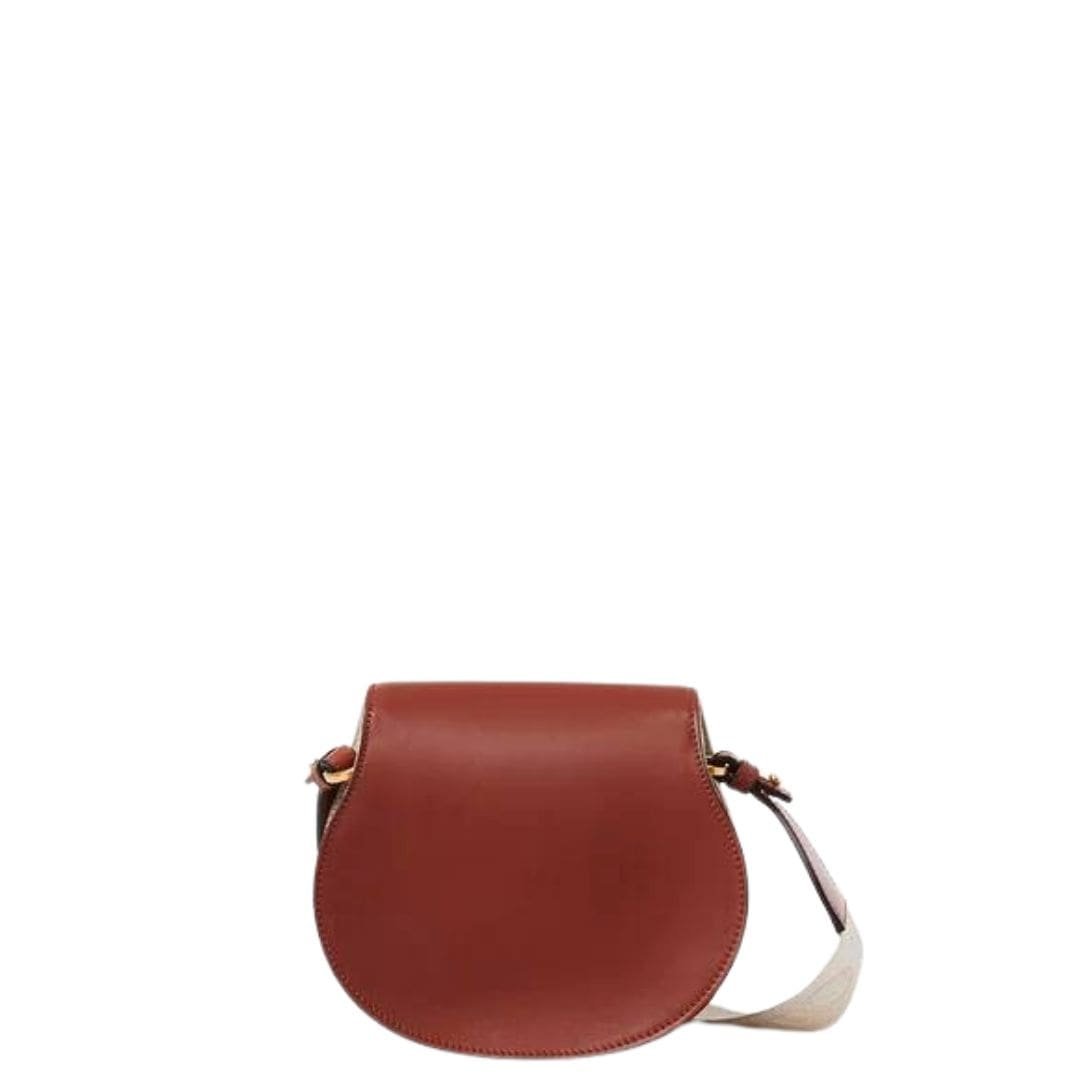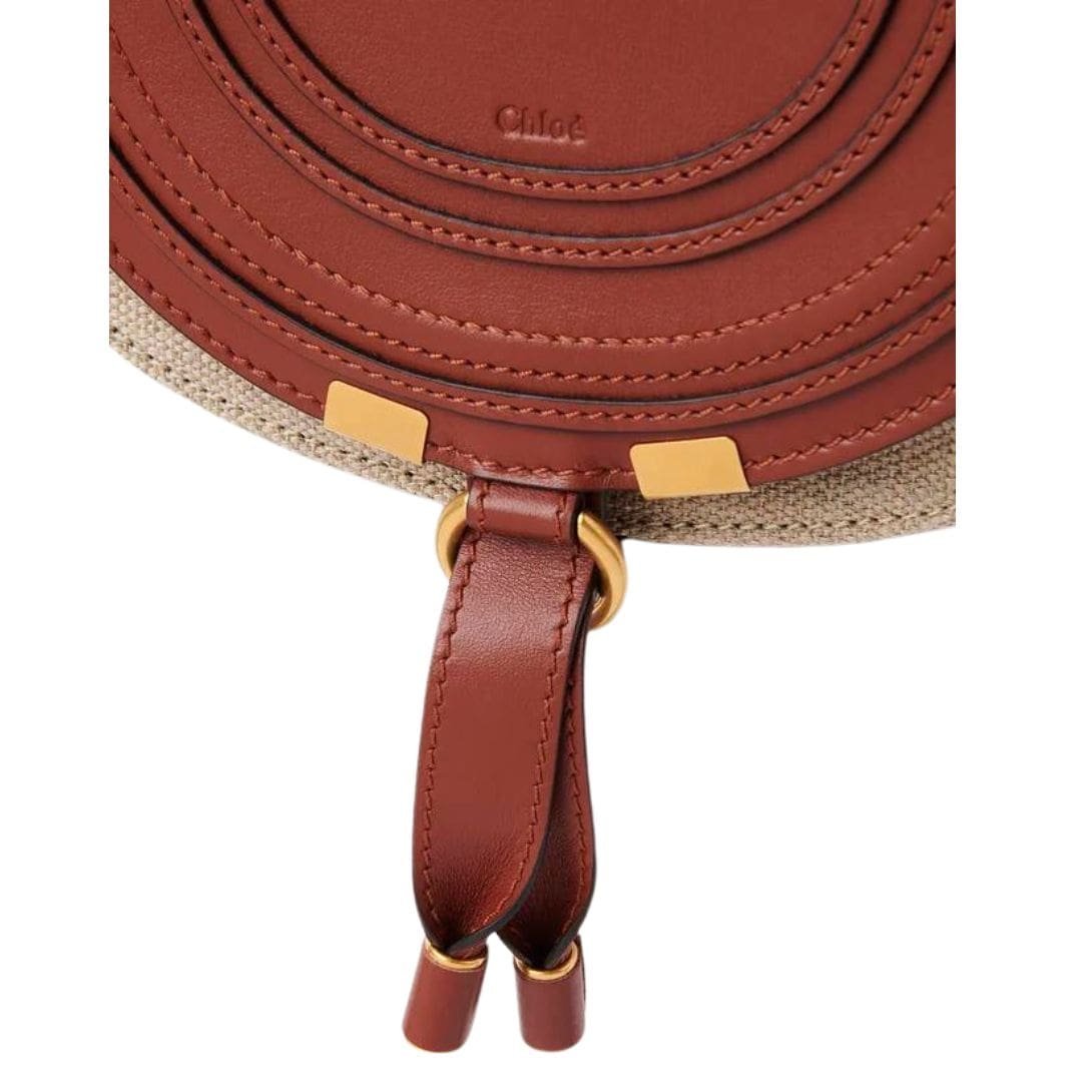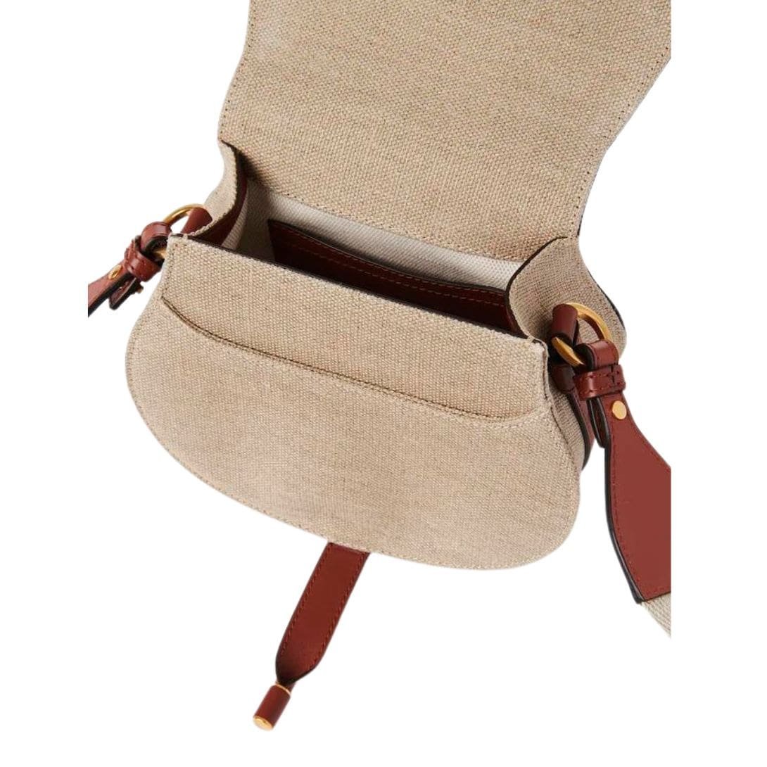 CHLOE SMALL MARCIE SADDLE BAG IN LINEN & SMOOTH LEATHER SEPIA BROWN