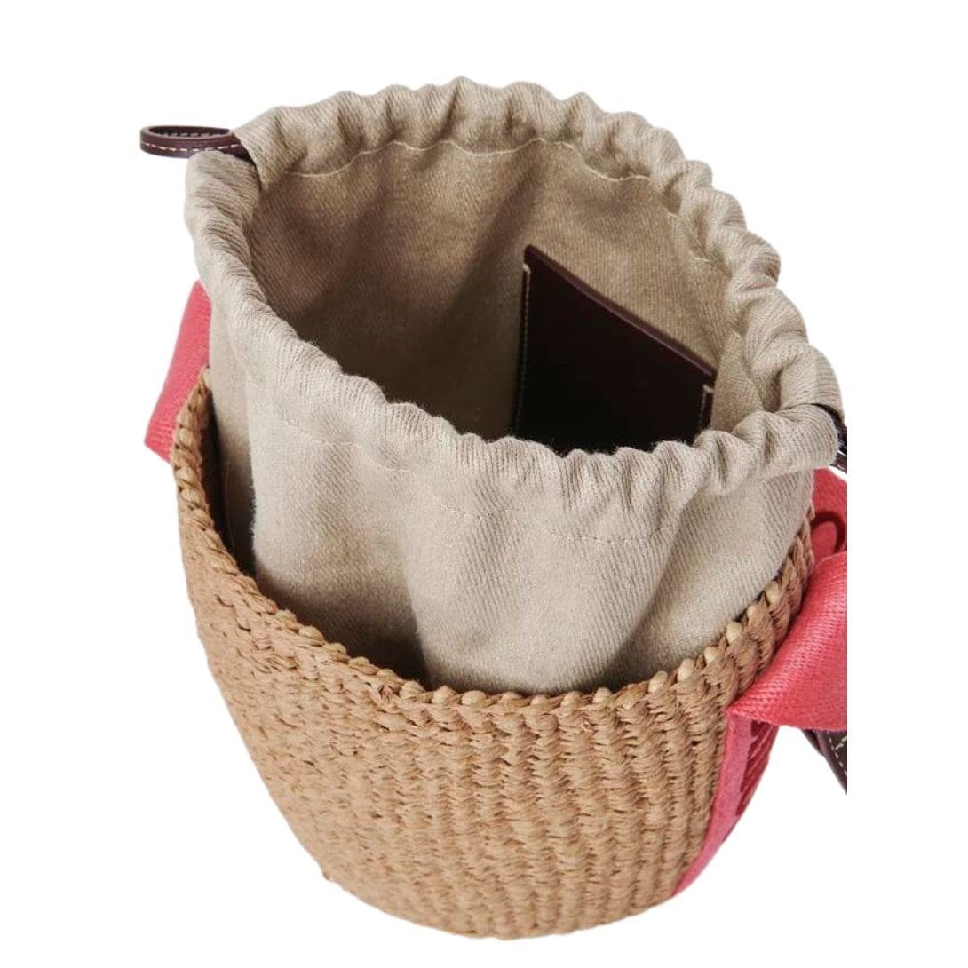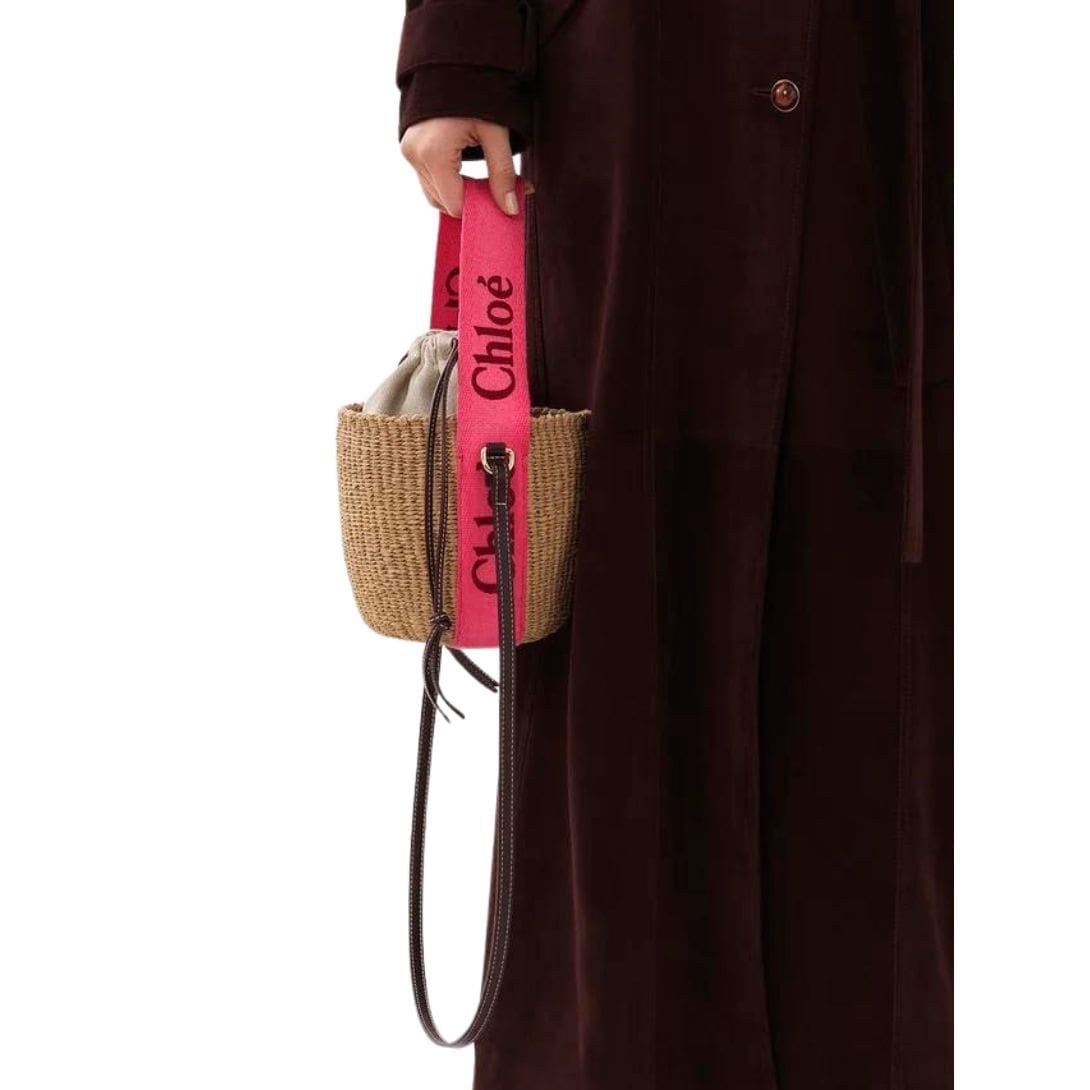 The signature Chloé logo, embroidered on bright webbing, adds a touch of vibrancy to the basket’s design. Practicality meets style with a drawstring fastening and a long leather strap, offering versatile shoulder and cross-body wear options.