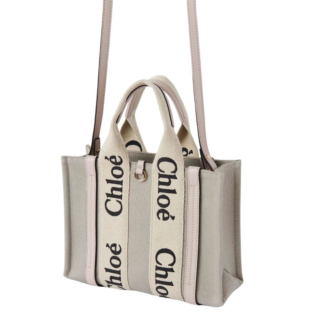 CHLOE SMALL WOODY TOTE BAG COTTON GREY