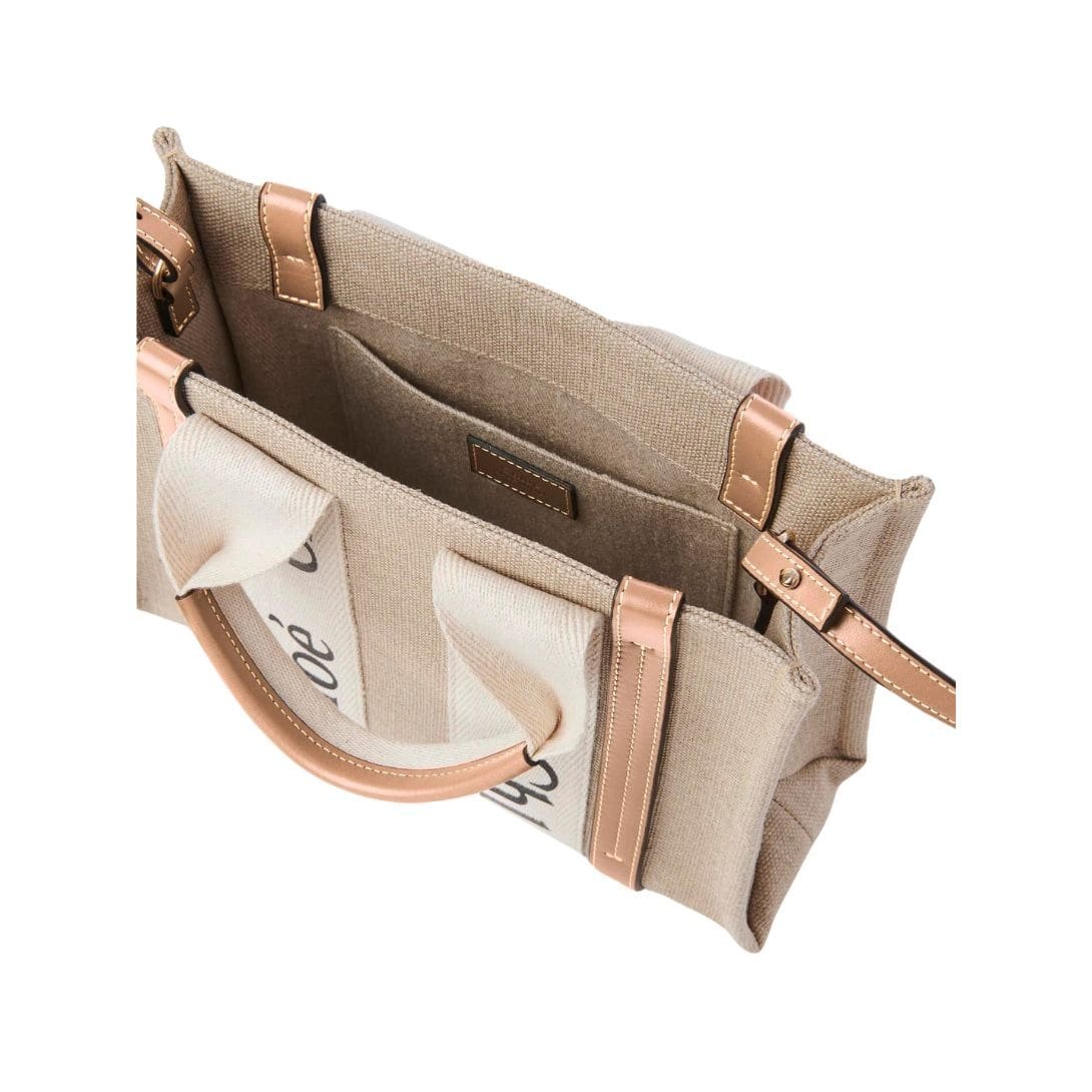 CHLOE SMALL WOODY TOTE BAG WHITE AND BEIGE