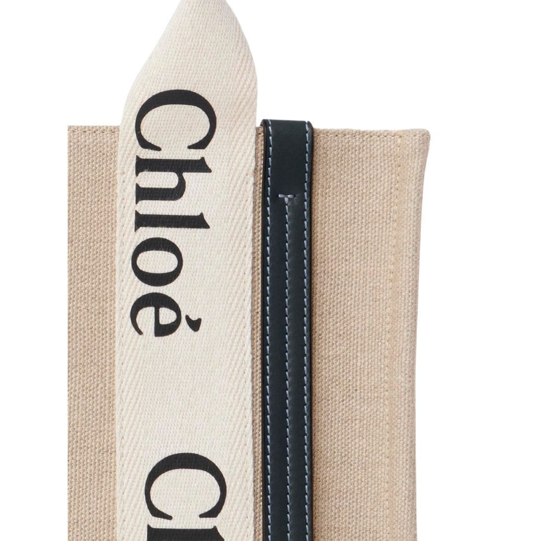 CHLOE SMALL WOODY TOTE BAG WHITE AND BLUE