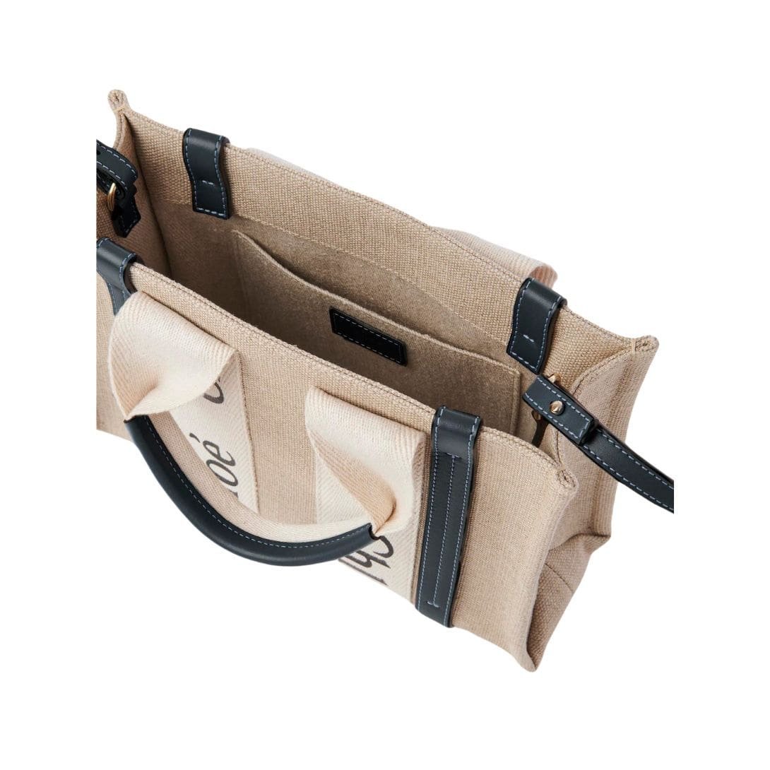 Crafted with meticulous attention to detail, the CHLOE Small Woody Tote Bag White And Blue embodies sophistication and versatility in its design. Comprising a harmonious fusion of linen canvas and glossy calfskin accents, this small yet elegant accessory exudes a timeless appeal. The combination of these materials not only adds textural interest but also underscores Chloe’s commitment to sustainable practices by incorporating environmentally conscious elements.