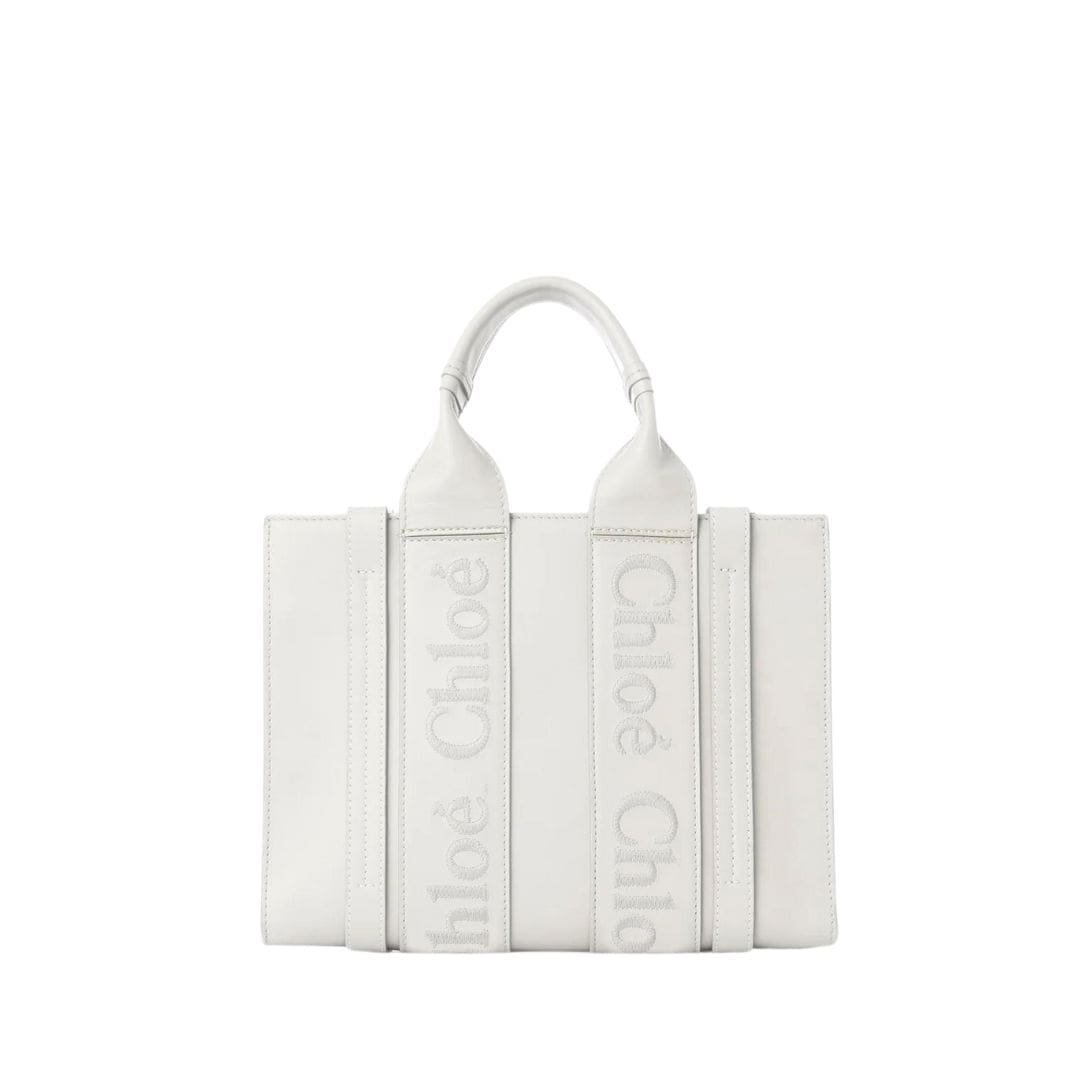 CHLOE SMALL WOODY TOTE BAG WHITE