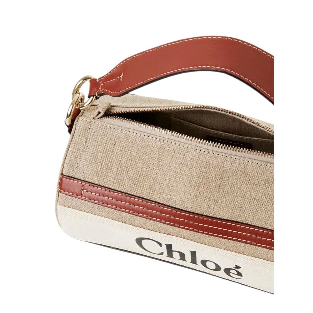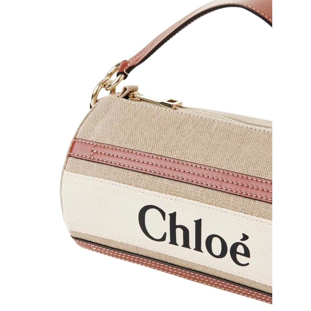 CHLOE TUBE SHOULDER BAG IN LINEN & SMOOTH LEATHER WHITE-BROWN