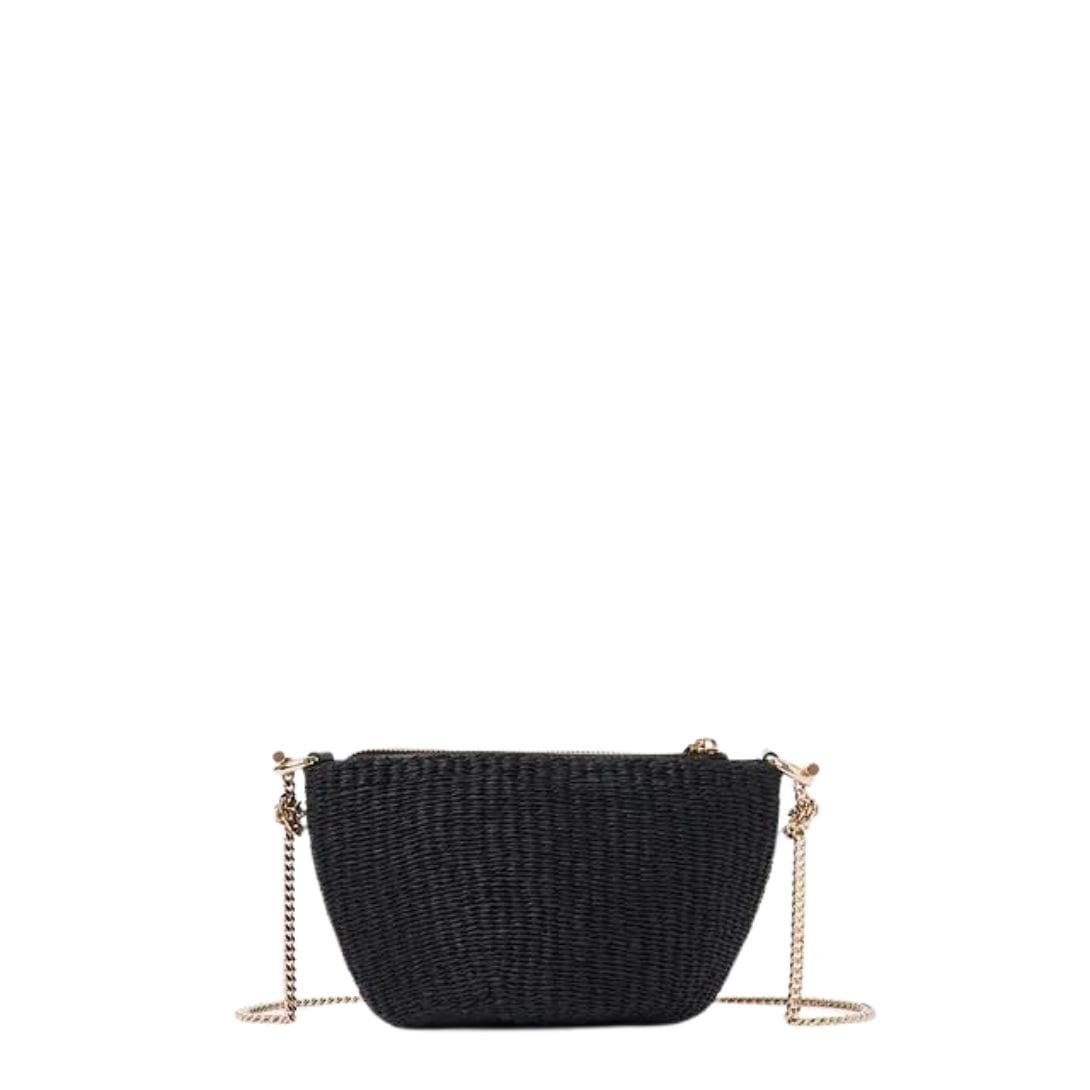 Handwoven Chloe Zippered Mini Basket With Chain Black. meticulous care by skilled craftswomen in Kenya using fair-trade paper, the Chloé Zippered Mini Basket with Chain is a testament to artisanal craftsmanship and sustainable fashion practices. Each basket is a unique piece, showcasing the vibrant colours and intricate weaving techniques of its origin.