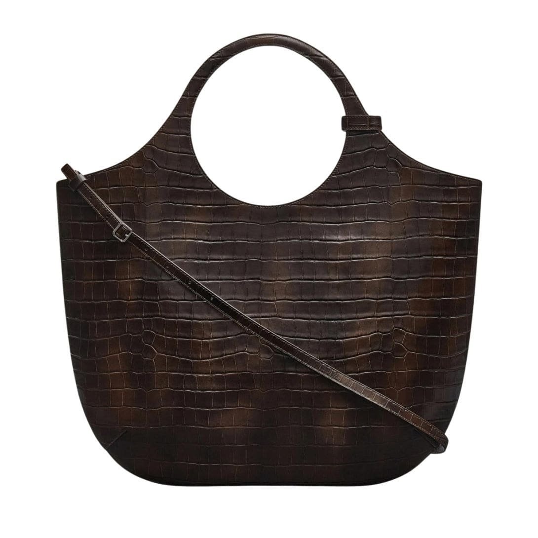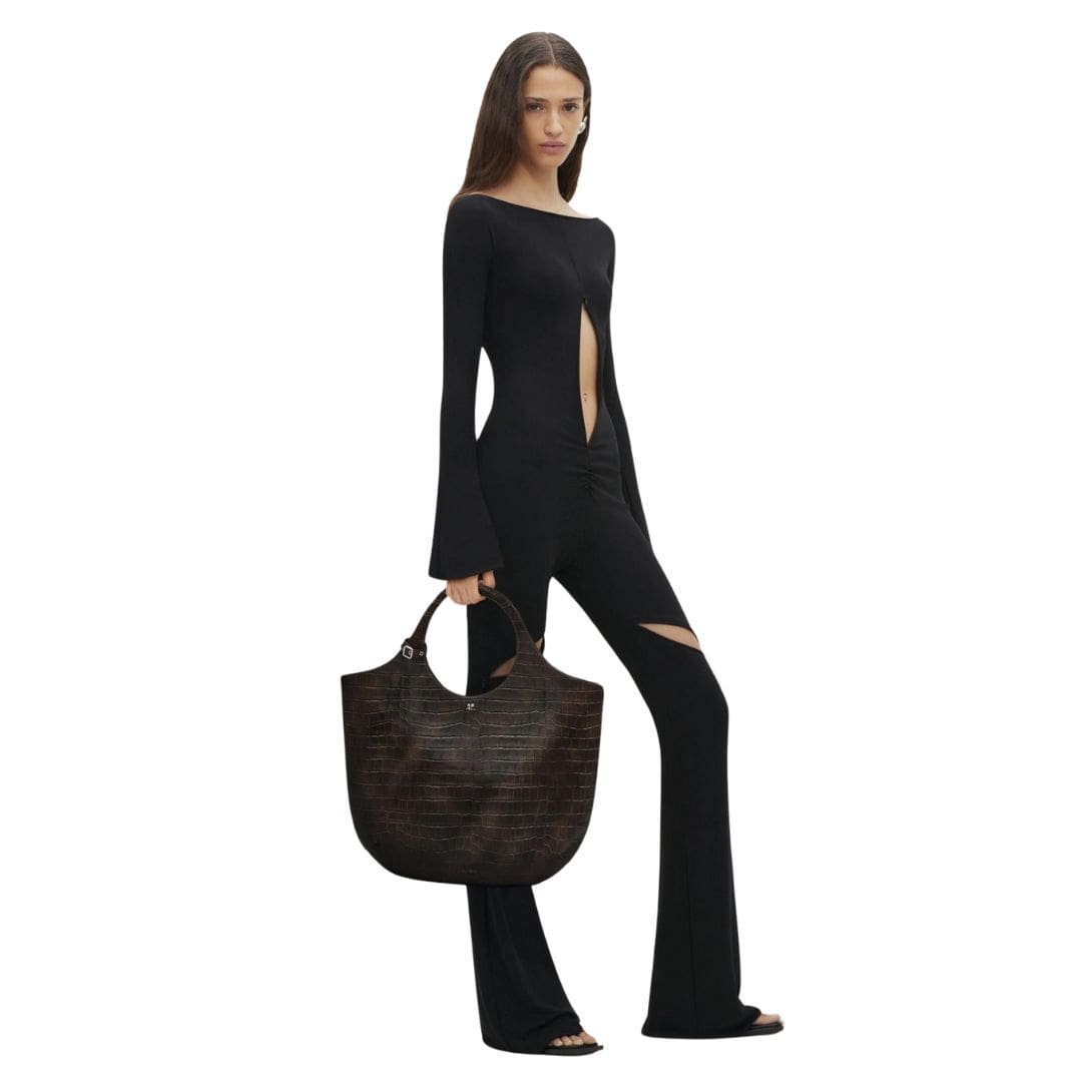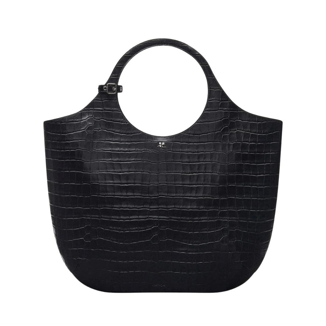 Courrèges’ Large Holy Croco Stamped Bag is more than just a fashion accessory; it’s a symbol of sophistication and refinement. The minimalist silhouette is enhanced by subtle branding elements, allowing the bag’s quality and design to speak for themselves. Whether carried by the top handles for a polished look or slung over the shoulder with the detachable strap for added convenience, it exudes confidence and effortless chic. COURREGES LARGE HOLY CROCO STAMPED BAG