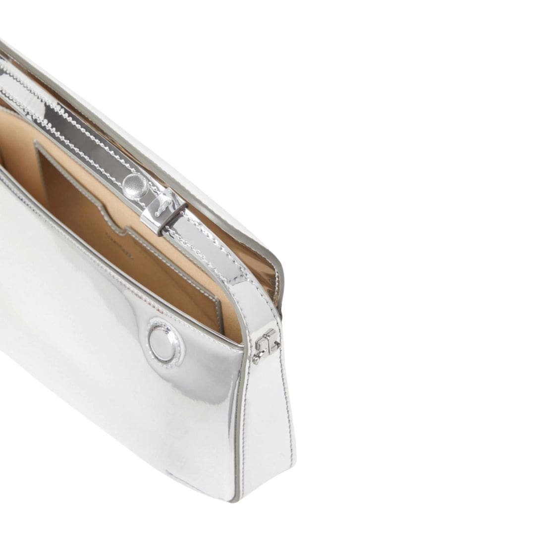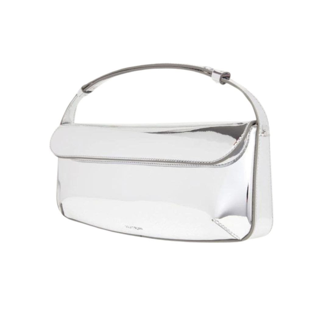 At first glance, the Sleek Mirror Baguette Bag captivates with its minimalist yet bold aesthetic. The bag features a smooth, reflective surface, reminiscent of polished metal, that instantly catches the light and turns heads. This mirror-like finish is both glamorous and edgy, making it a perfect statement piece for any fashion-forward individual.
