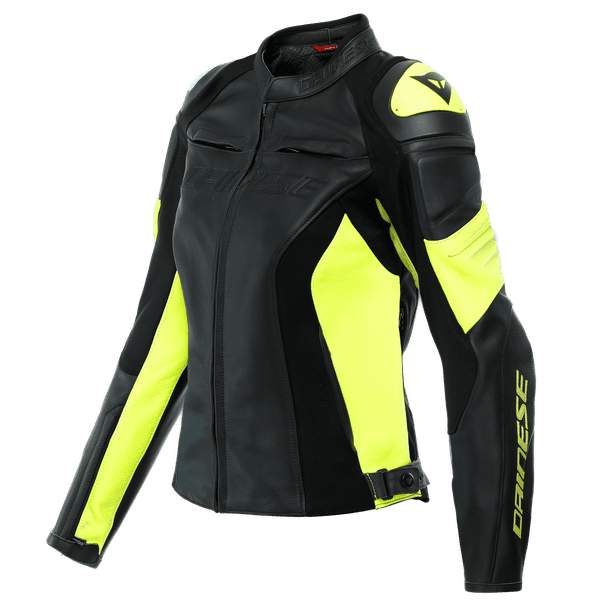 The Dainese Racing 4 Lady Leather Jacket epitomizes sleek style and high-performance functionality for female riders. Crafted from premium cowhide leather, it offers durability and abrasion resistance, ensuring safety on the road. Designed with precision, its tailored fit accentuates the feminine silhouette while providing comfort and flexibility during rides.