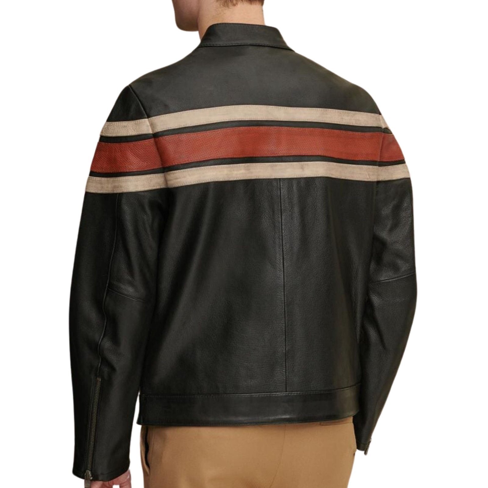 Introducing the Dale Retro Striped Leather Jacket, a stunning fusion of vintage flair and contemporary style. Crafted with meticulous attention to detail, this jacket is designed to make a bold statement wherever you go.