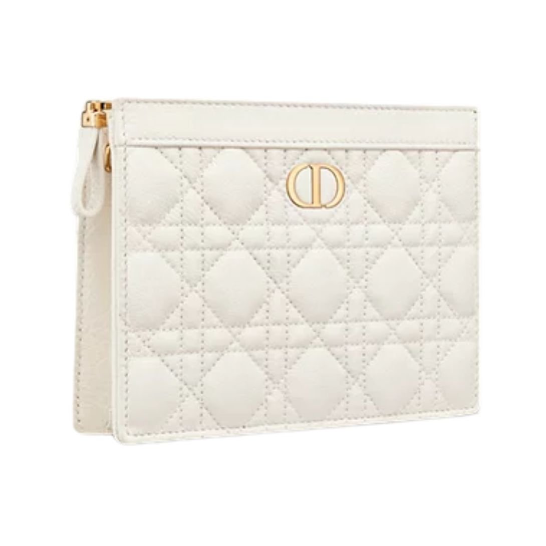 The Every Dior Pouch from the Dior Caro line blends modern functionality with the House’s timeless elegance. Crafted in black supple calfskin with the signature Cannage topstitching, it is embellished with a refined CD signature on the front. Designed for both form and function, the pouch offers a practical yet luxurious way to carry daily essentials.