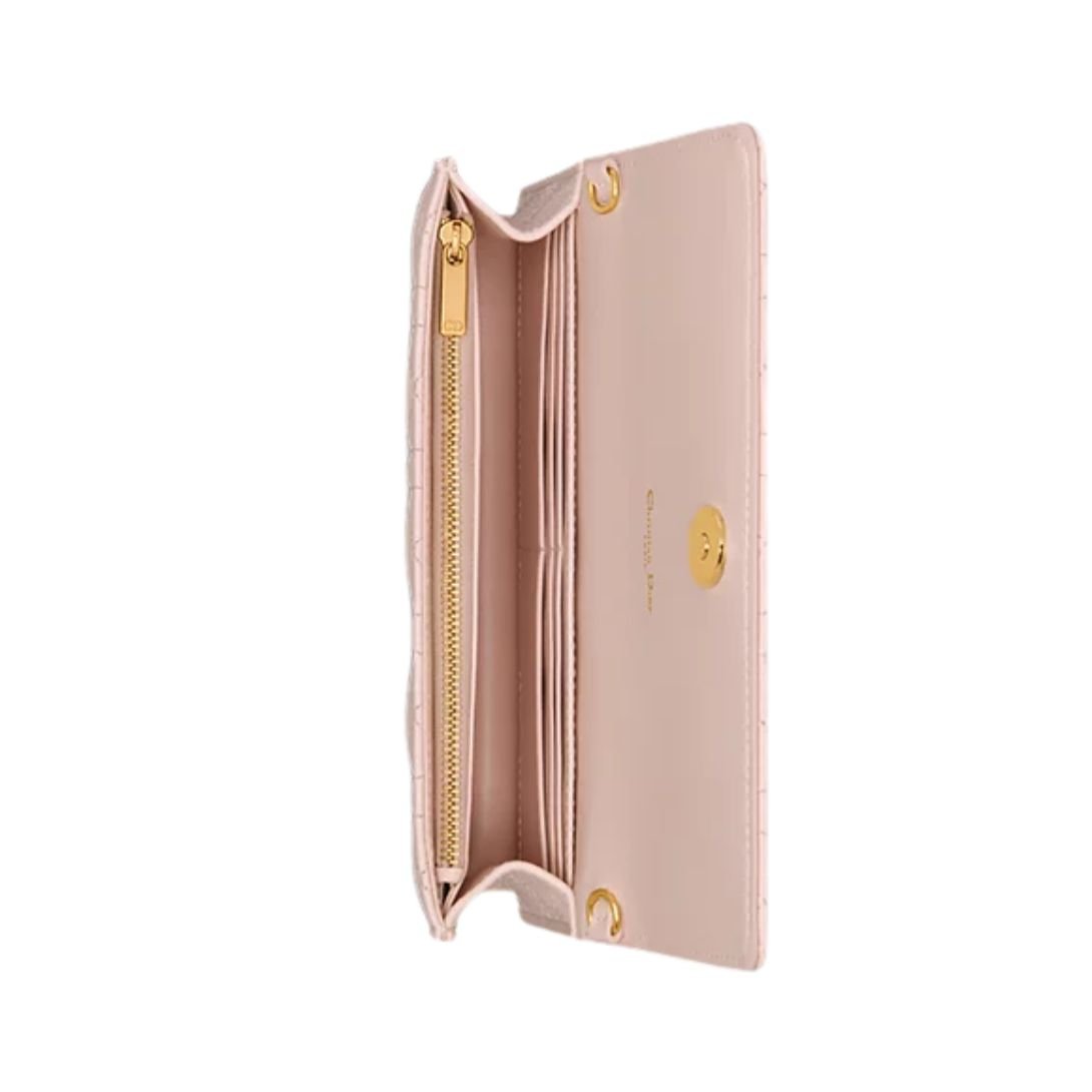 DIOR CARO POUCH WITH CHAIN SUPPLE CANNAGE CALFSKIN WOMEN POWDER PINK