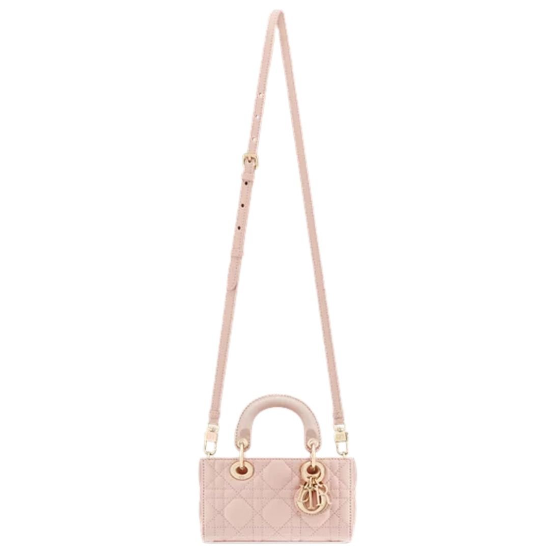 Designed for effortless versatility, the Lady D-Joy Micro Bag comes with two detachable straps: a removable chain strap for evening glamour and a removable and adjustable leather shoulder strap for more relaxed, crossbody or shoulder wear. Whether carried by hand or worn on the body, it transitions seamlessly from day to night.