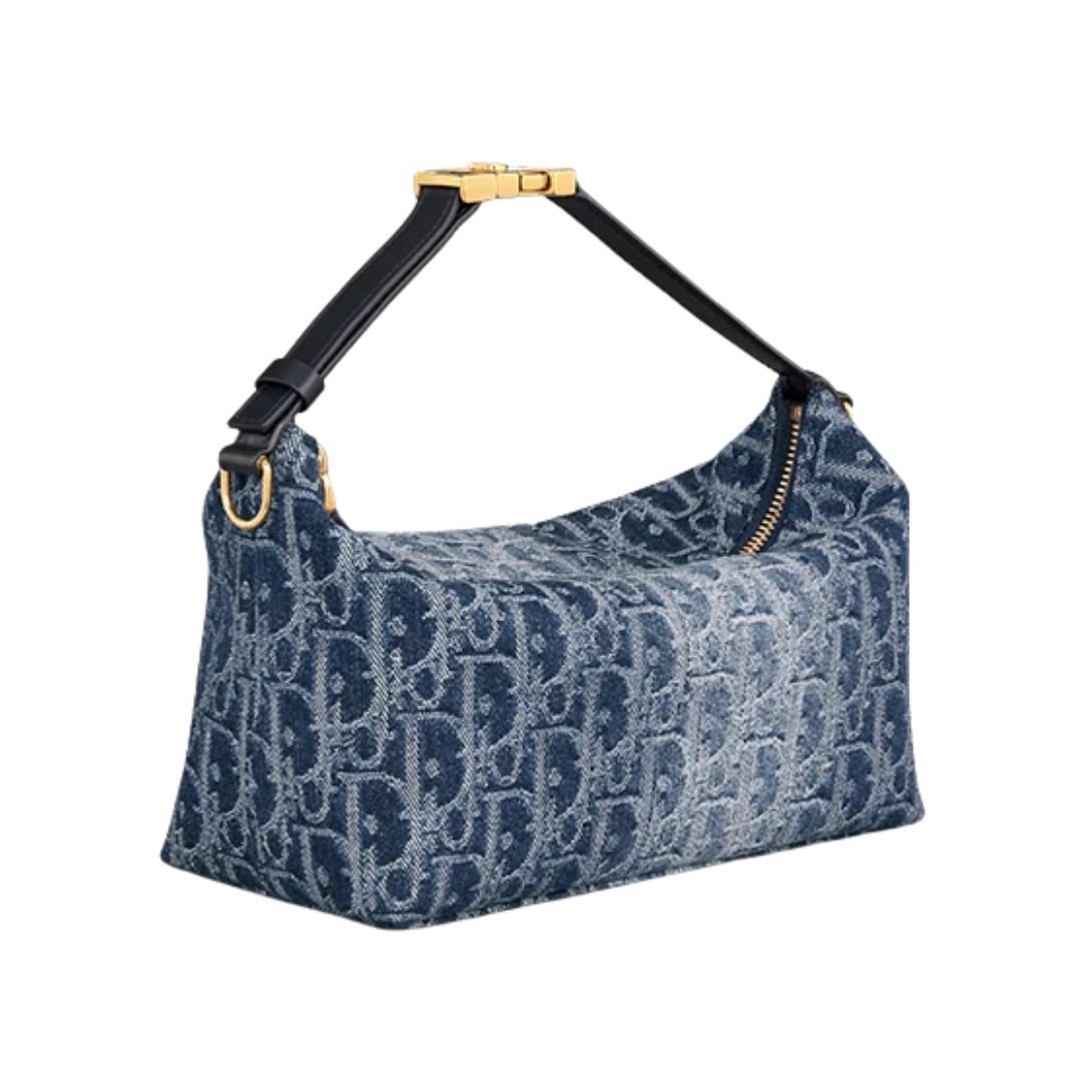 DIOR MEDIUM DIORTRAVEL NOMAD POUCH BLUE DENIM OBLIQUE JACQUARD WOMEN