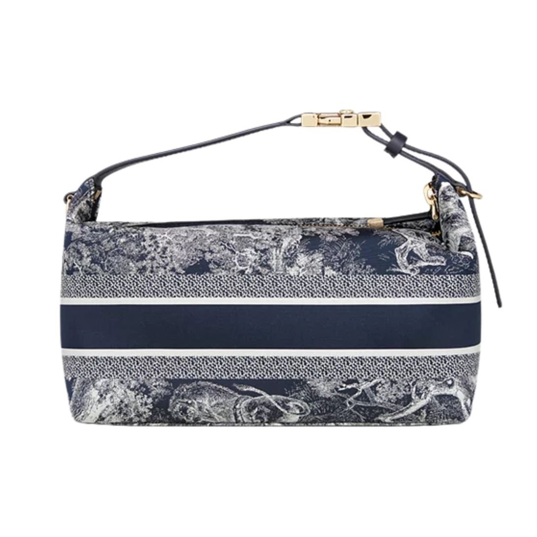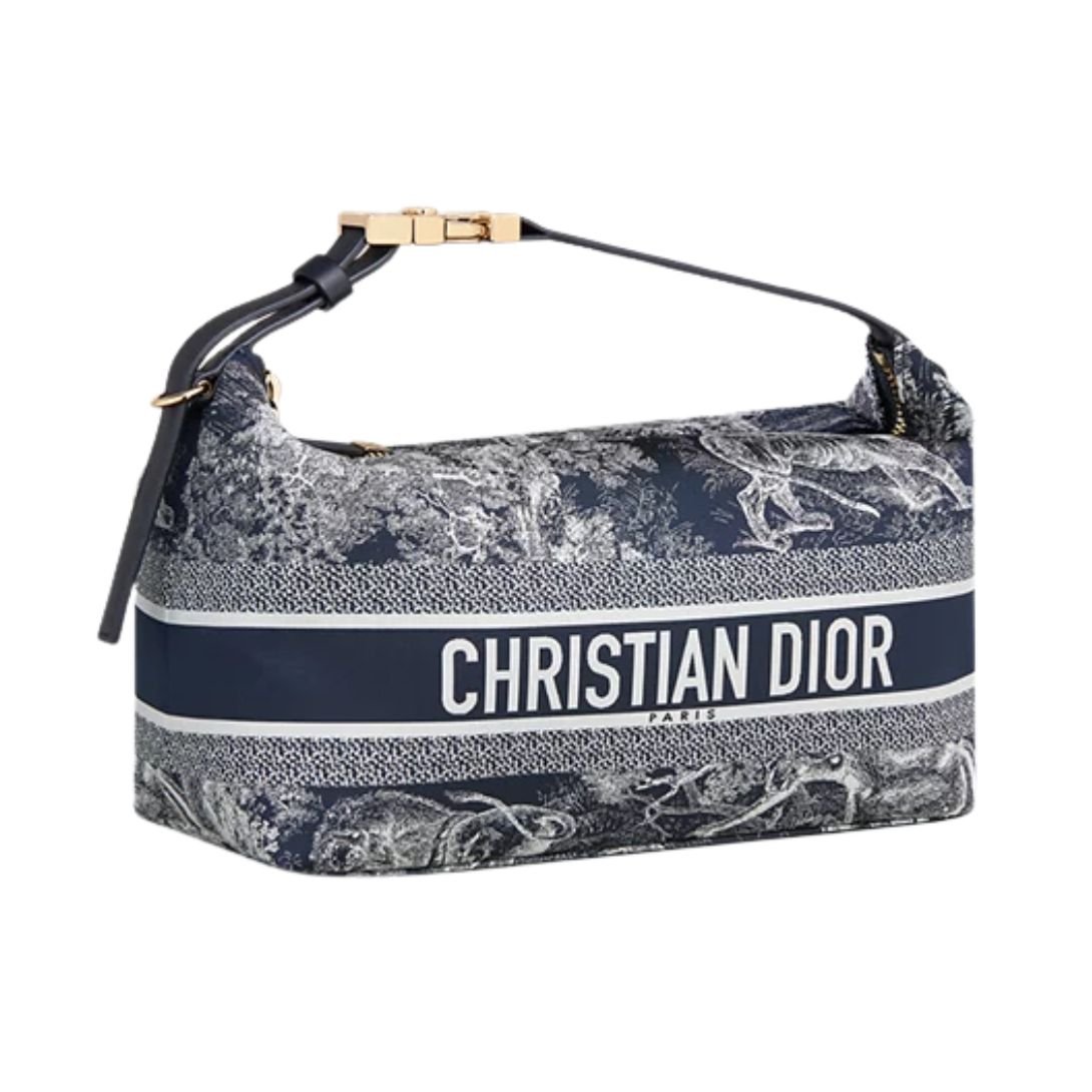 Designed for function and elegance, the pouch features a spacious, soft structure to hold daily essentials with ease. A military-inspired top handle with a pale gold-finish CD buckle offers handheld carry, while side rings allow for customization with one of Dior’s embroidered shoulder straps.