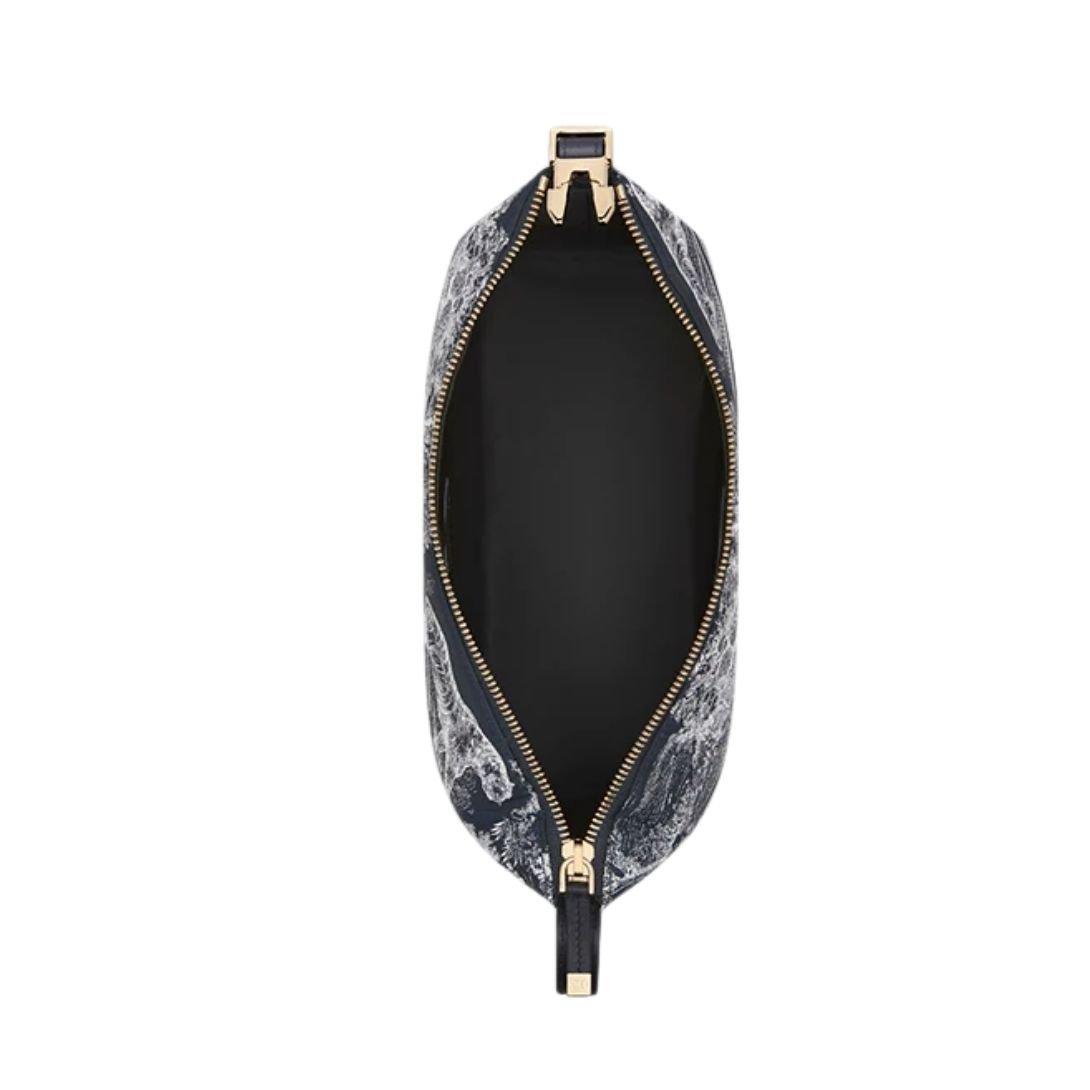 Reimagined by Maria Grazia Chiuri, the DiorTravel Nomad Pouch redefines everyday utility with a fashion-forward twist. Crafted in blue technical fabric adorned with the Toile de Jouy Reverse motif, this modern hybrid piece showcases the House’s bold reinterpretation of a classic pattern in a stonewashed, textured finish.