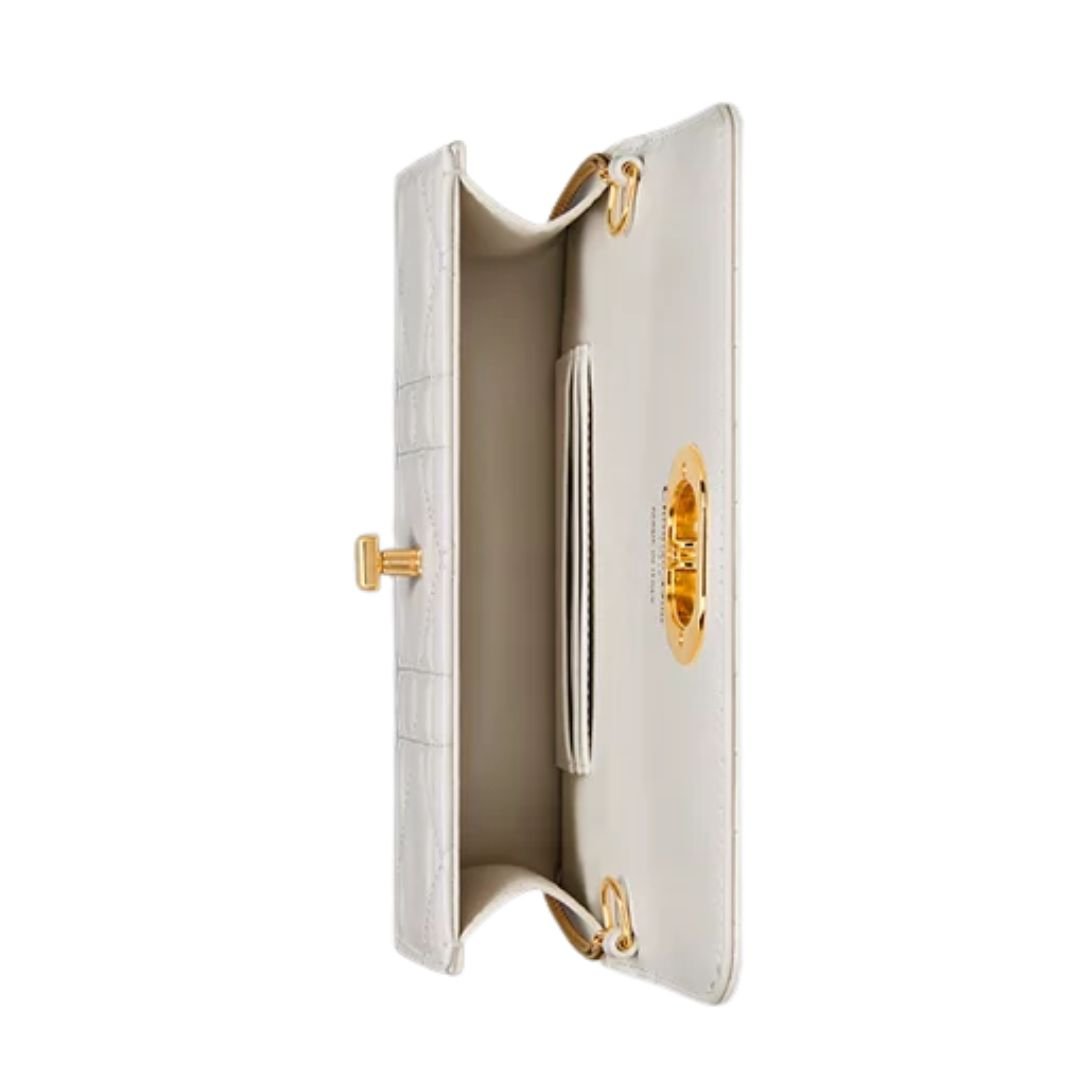 The Miss Caro Pouch with Chain blends practicality with graceful charm. Crafted in powder pink lambskin with Macrocannage topstitching, it showcases Dior’s signature craftsmanship. The antique gold-finish CD twist clasp, inspired by a Christian Dior perfume seal, adds a refined vintage touch to the flap closure. Compact yet spacious, the interior holds all the daily essentials. The CD-link chain strap allows for versatile wear — carried by hand, over the shoulder, or crossbody.
