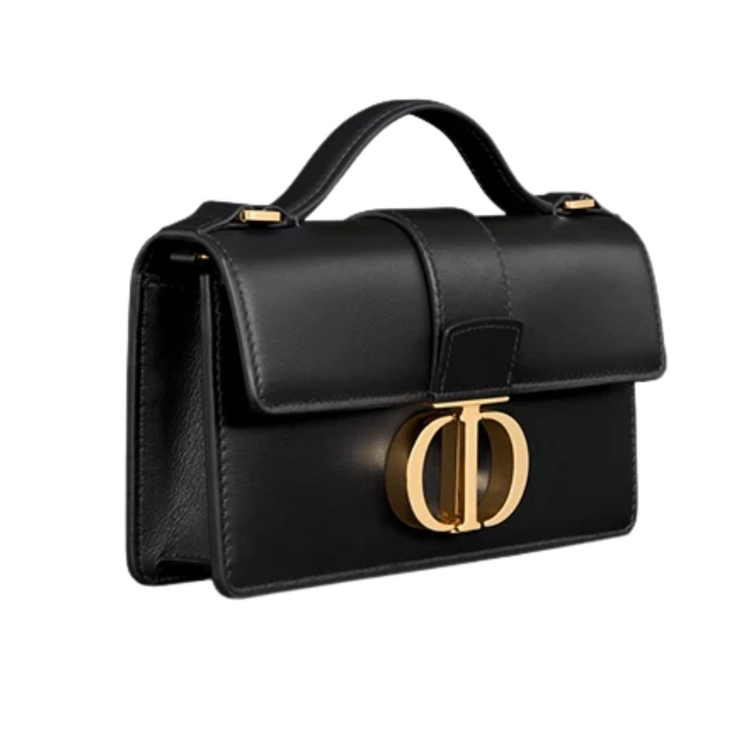 Combining refined elegance with everyday practicality, the Miss Montaigne mini bag is crafted in black smooth calfskin and accented by a flap closure featuring the CD twist clasp—an homage to the seal of a Christian Dior perfume bottle. Its compact silhouette is designed to hold daily essentials, making it an ideal companion for both day and evening use.