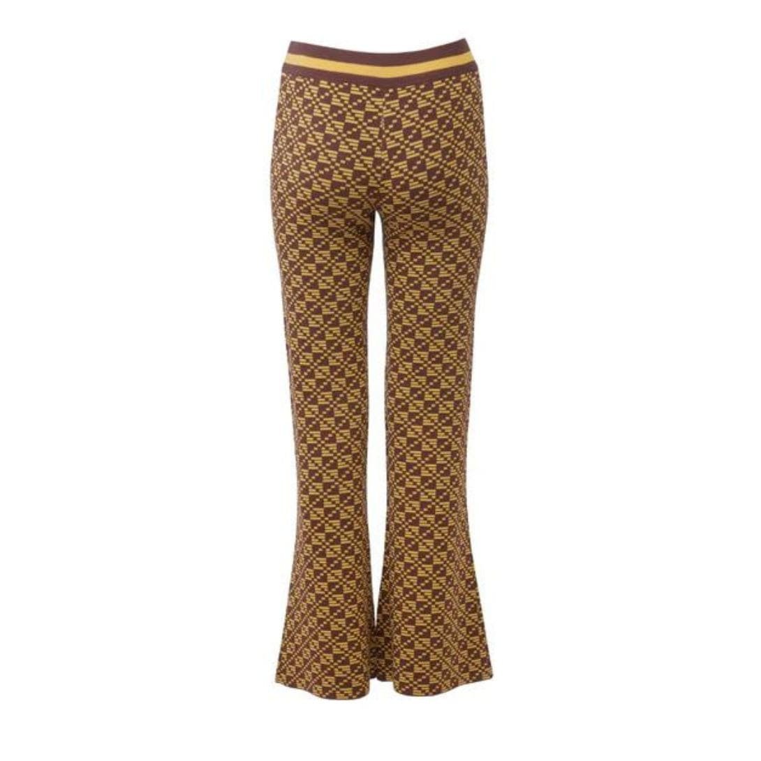 The Dodo Bar OR CHO PANTS Crafted from geometric jacquard knit, the Cho Pants are designed for a tight fit with flared legs.
