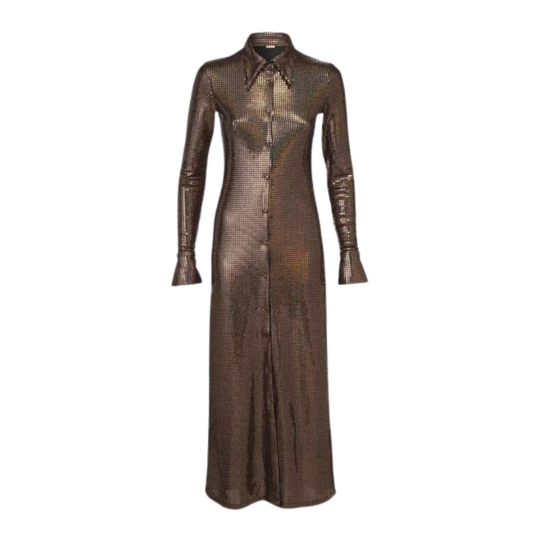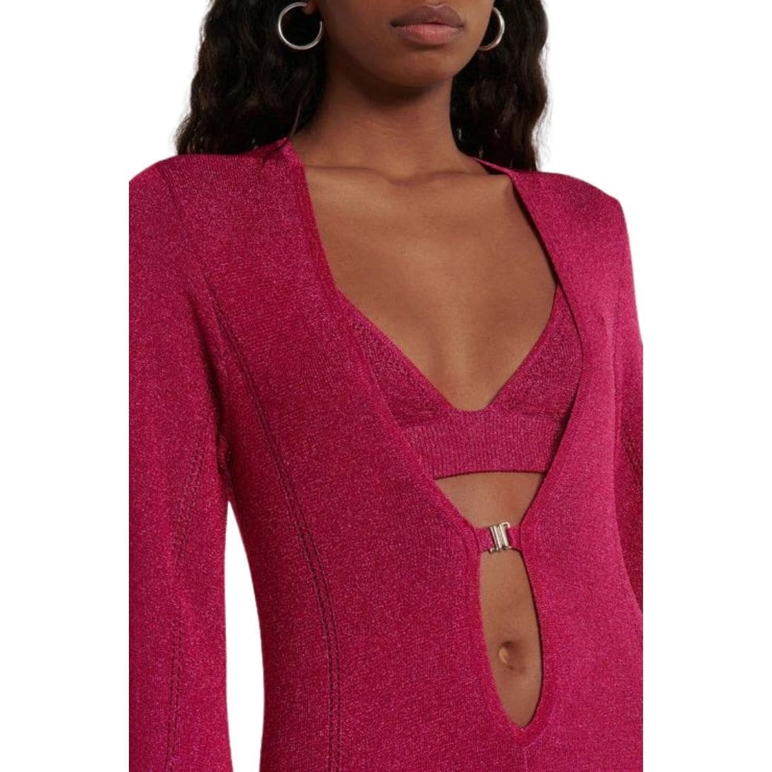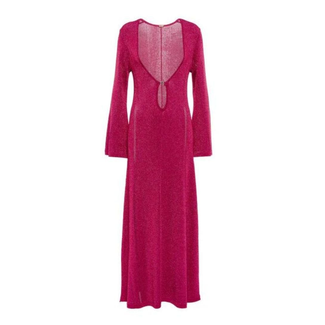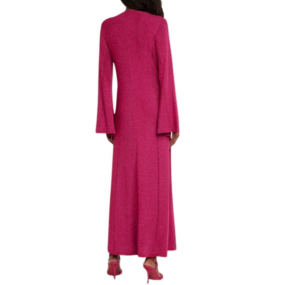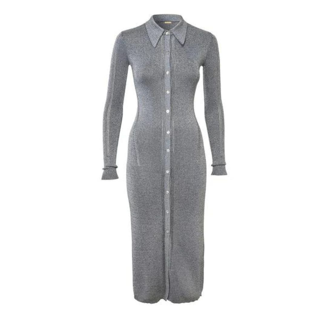 The Dodo Bar OR Juna Dress is crafted from a Lurex knit, designed in a relaxed silhouette with a plunging neckline held together with a silver buckle and featuring fluted sleeves.