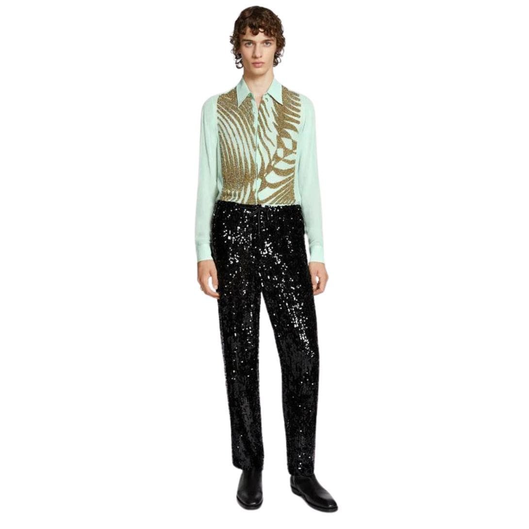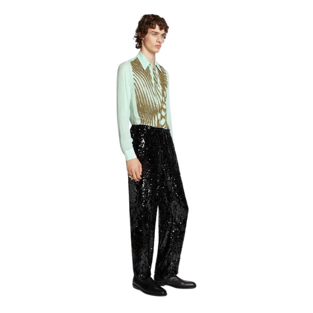 Introducing our dries van noten Embellished Pants, where comfort meets opulence. These pants are crafted from premium fabric, offering a perfect balance of durability and luxurious feel. Intricate embellishments, whether sequins, beads, or embroidery, adorn the pants, adding a touch of glamour and sophistication to your outfit. The tailored fit ensures a flattering silhouette, while the embellishments elevate the design, making them suitable for both special occasions and making a chic statement in everyday wear. With practical features like an elastic waistband for a secure fit and functional pockets, our Embellished Pants seamlessly blend style and functionality, offering a versatile piece that enhances any wardrobe with effortless elegance.