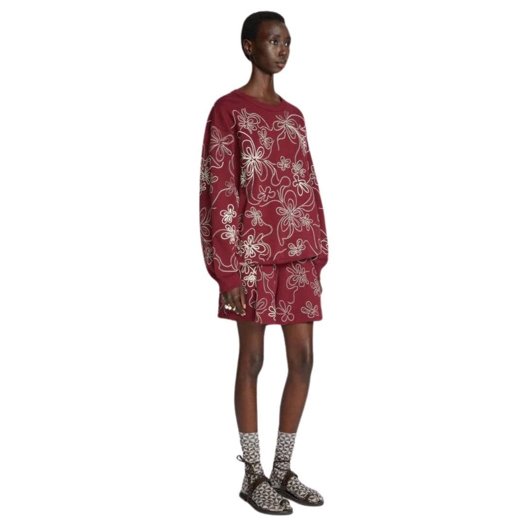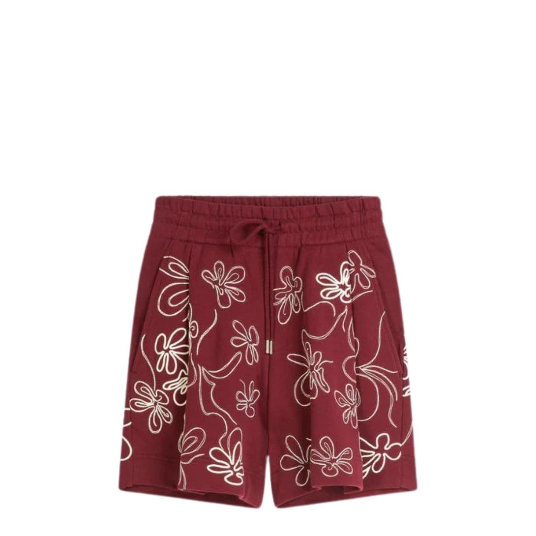 DRIES VAN NOTEN EMBROIDERED SHORTS BURGUNDY