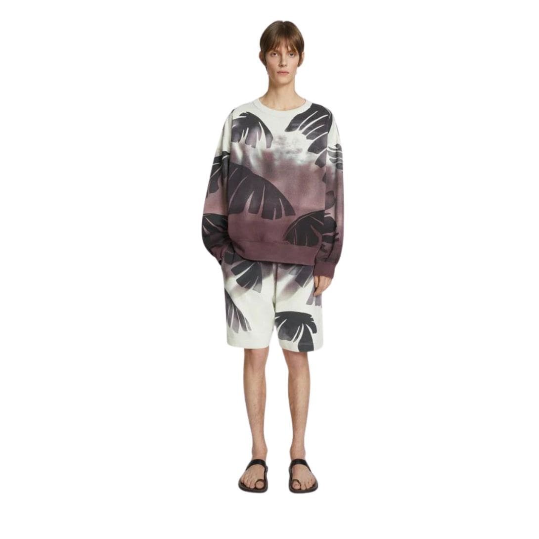 Dries Van Noten Printed Shorts sweatpants with a straight leg, a giant watercolor palm print, and a dip-dyed hem.