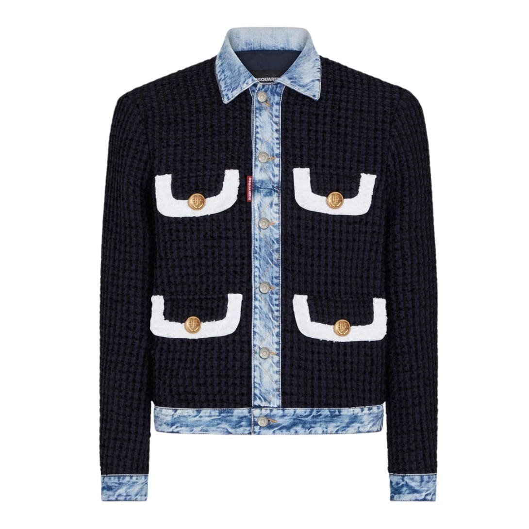 The silhouette of the bomber is tailored to perfection, boasting a relaxed fit that effortlessly drapes over the body, creating a flattering and effortlessly cool look. Ribbed knit trims adorn the collar, cuffs, and hem, providing a touch of contrast and defining the jacket’s classic shape. This attention to detail speaks to DSQUARED2’s commitment to quality and design excellence.